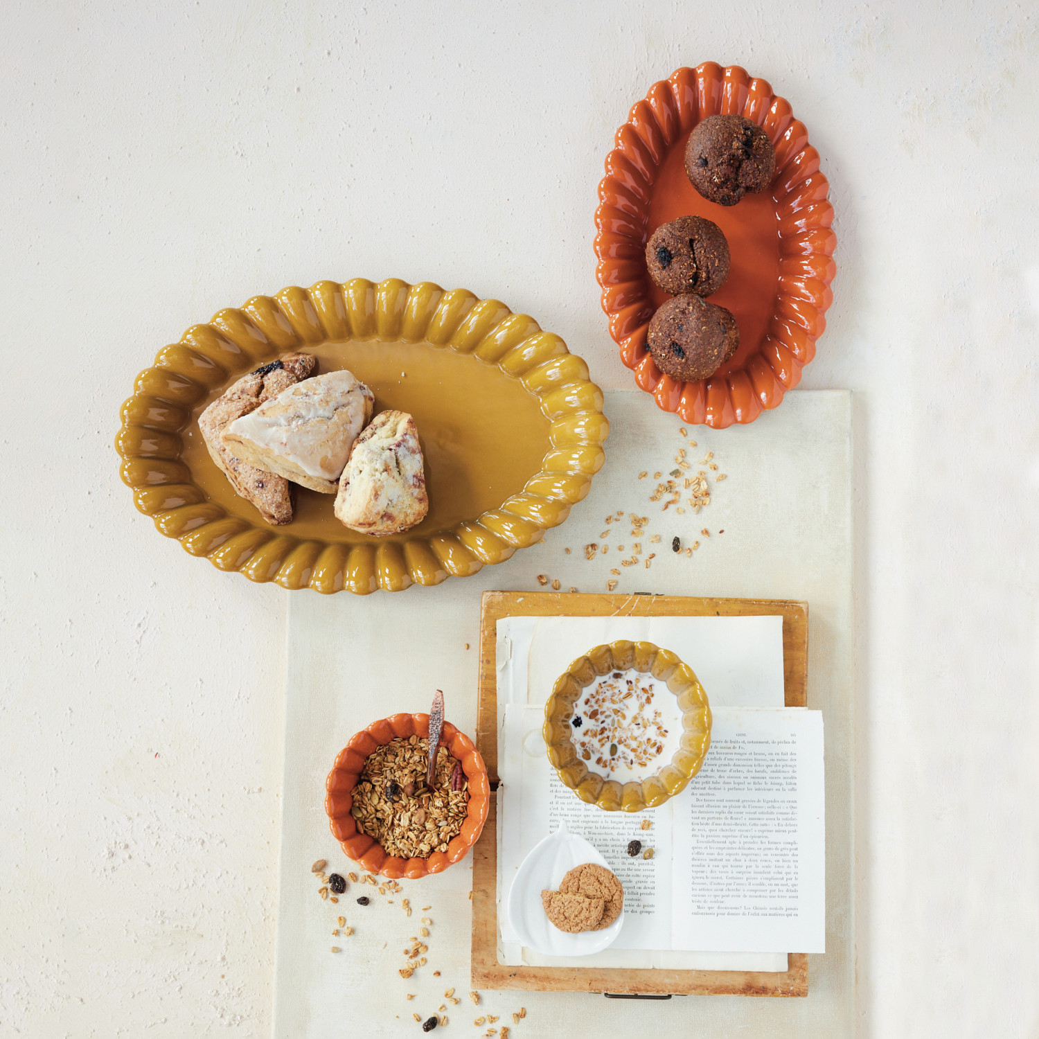 Catalog Name: 4"L x 3-1/2"W Stoneware Pumpkin Shaped Dish, White