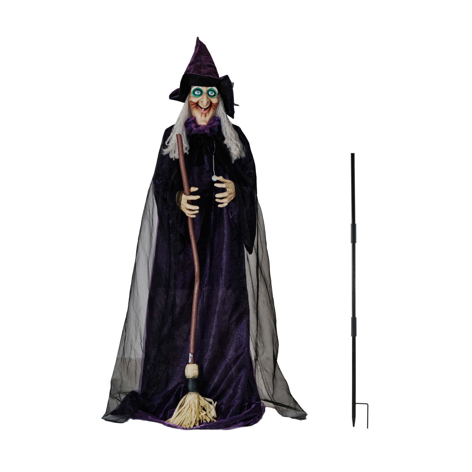 Fabric & Plastic Standing Animated Witch w/ Lights & Sound, Motion Activated