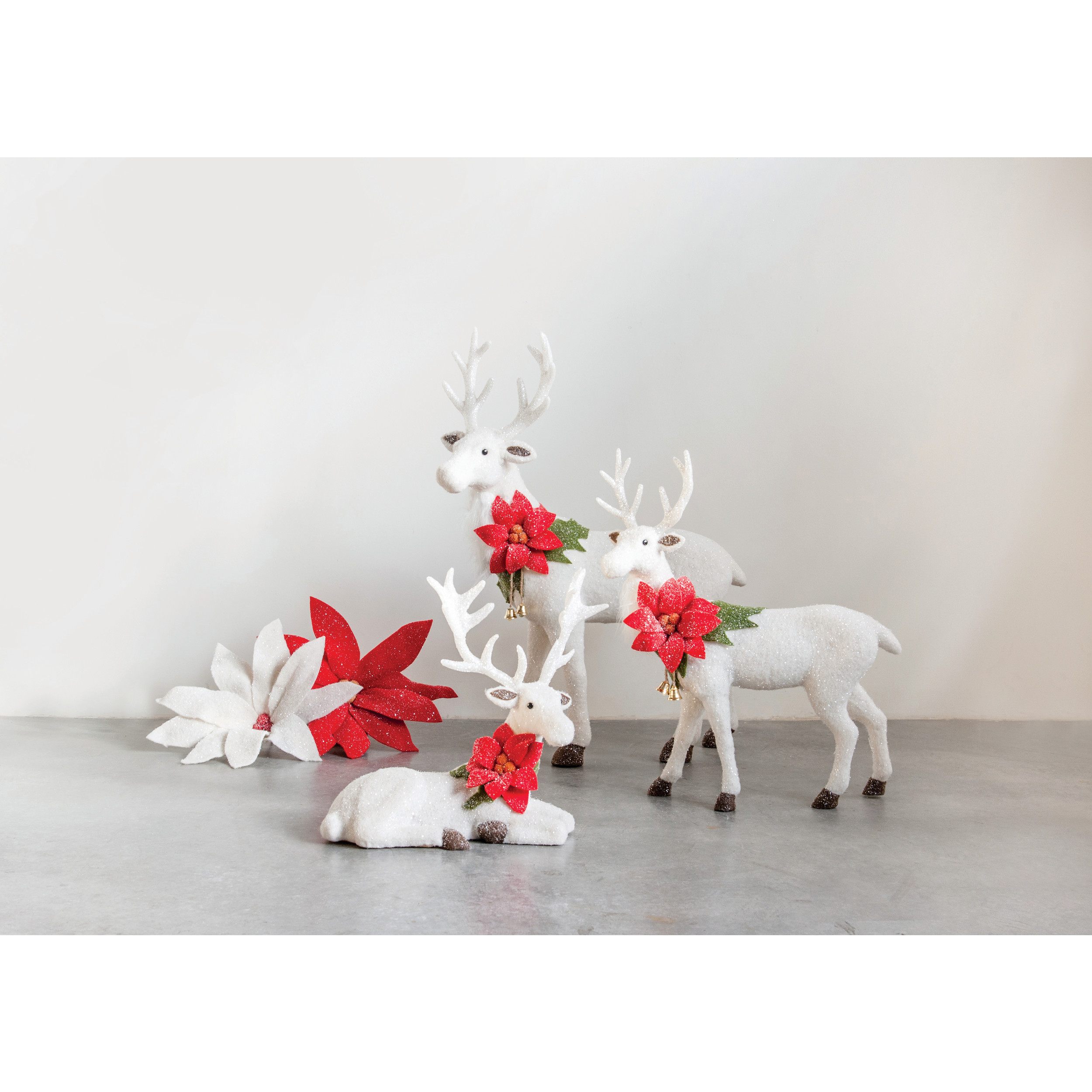 Catalog Name: 19-3/4"L x 19"H Felt Lying Stag w/ Poinsettia, White, Truck Ship
