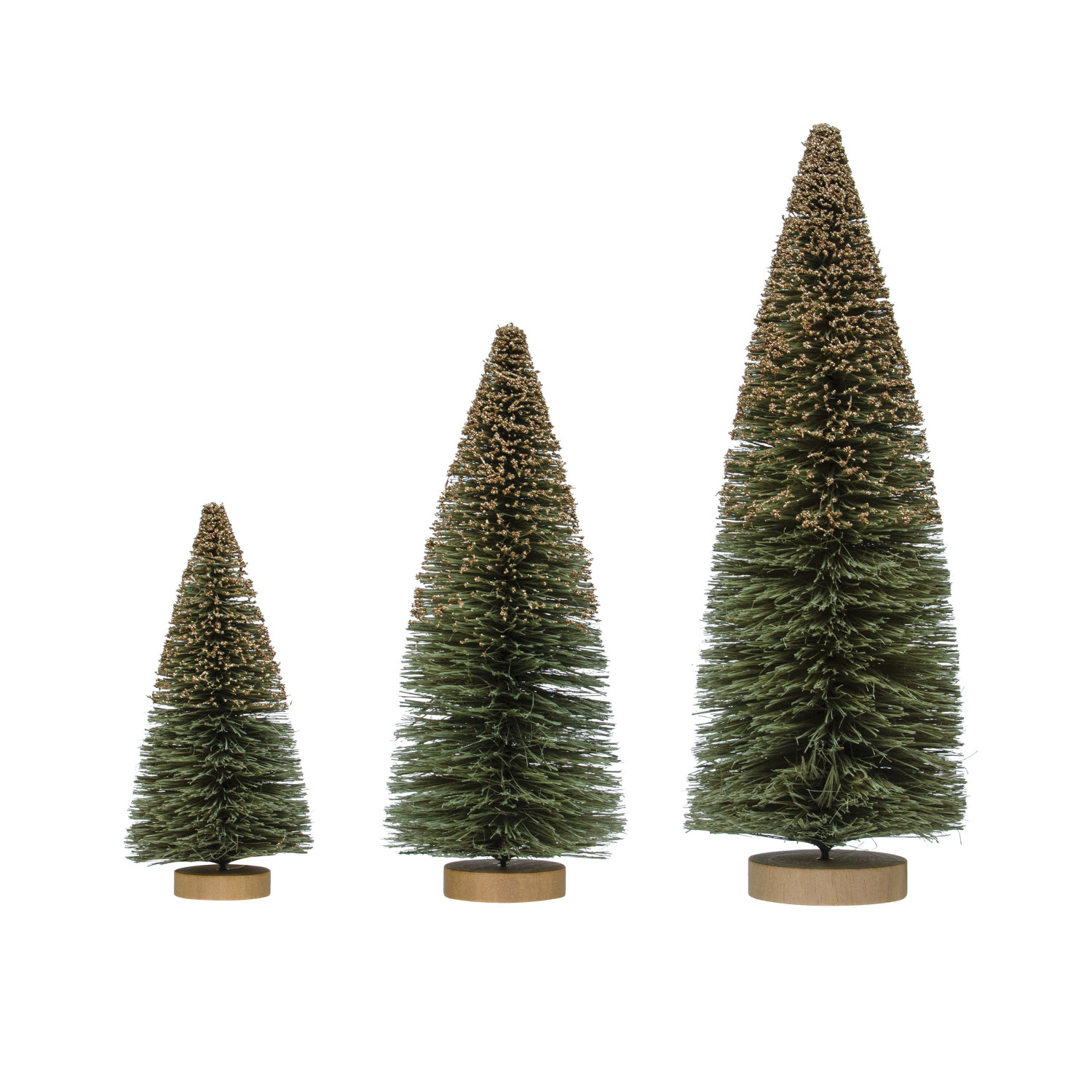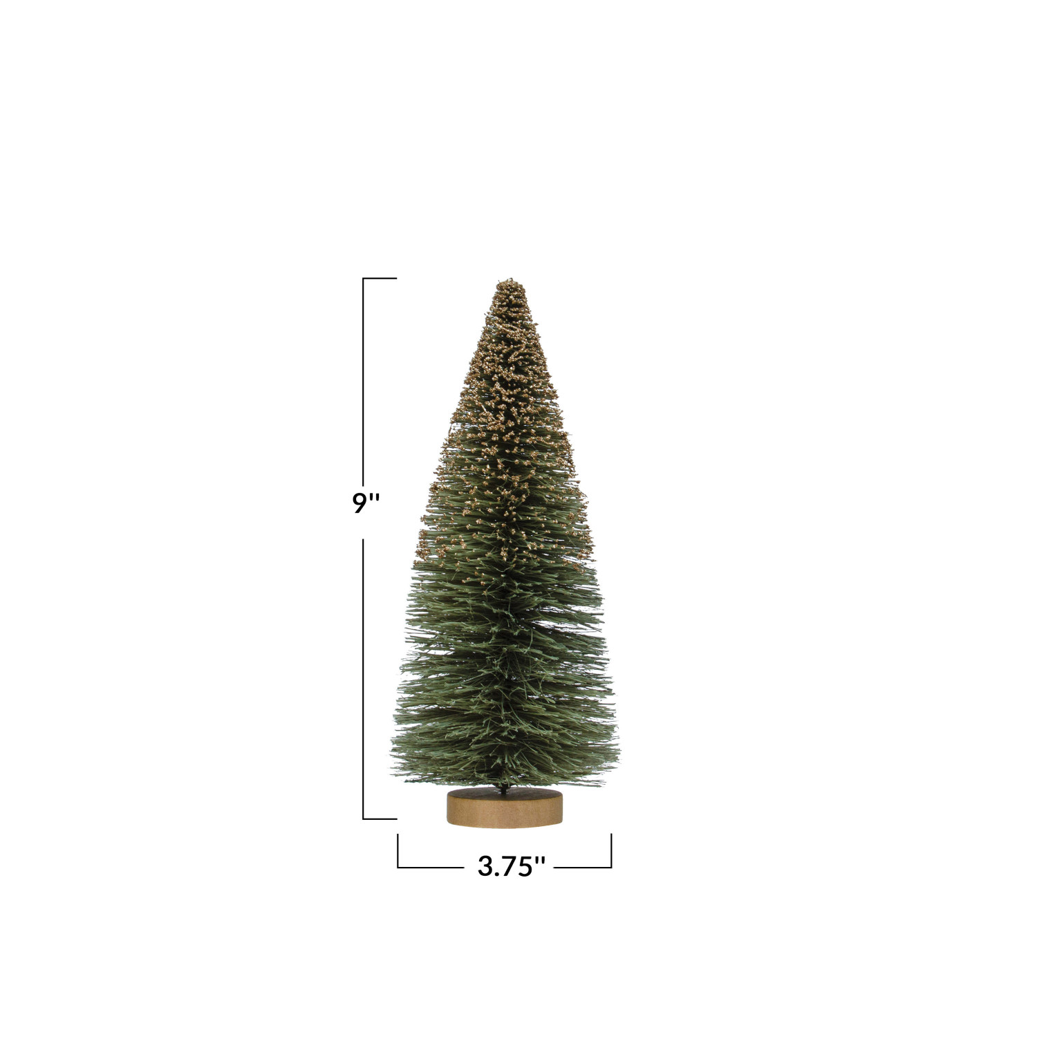 Catalog Name: 3-3/4" Round x 9"H Sisal Bottle Brush Tree w/ Glitter & Wood Base, Grey