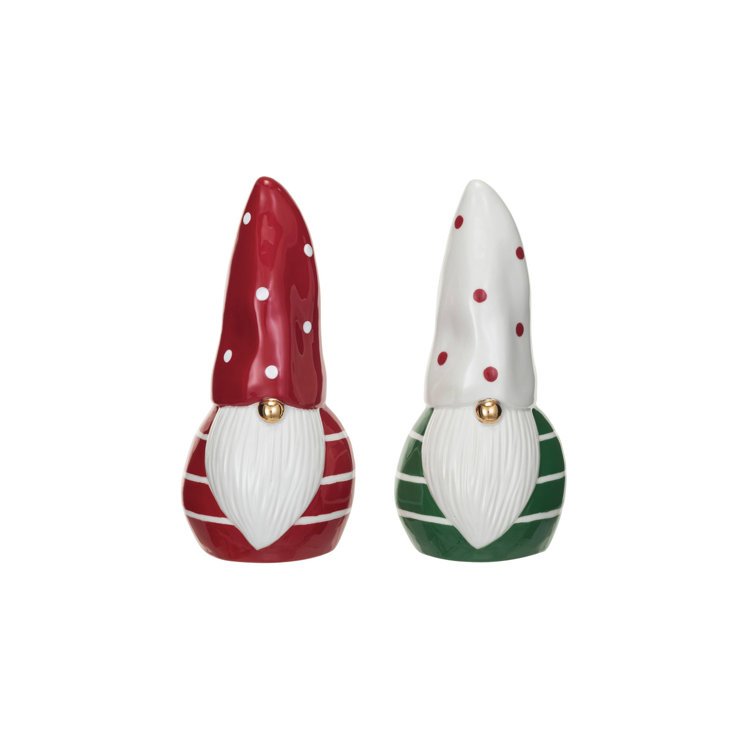 Catalog Name: 3-1/2"L x 3"W x 8"H Ceramic Gnome w/ Patterns & Gold Electroplated Nose, 2 Colors