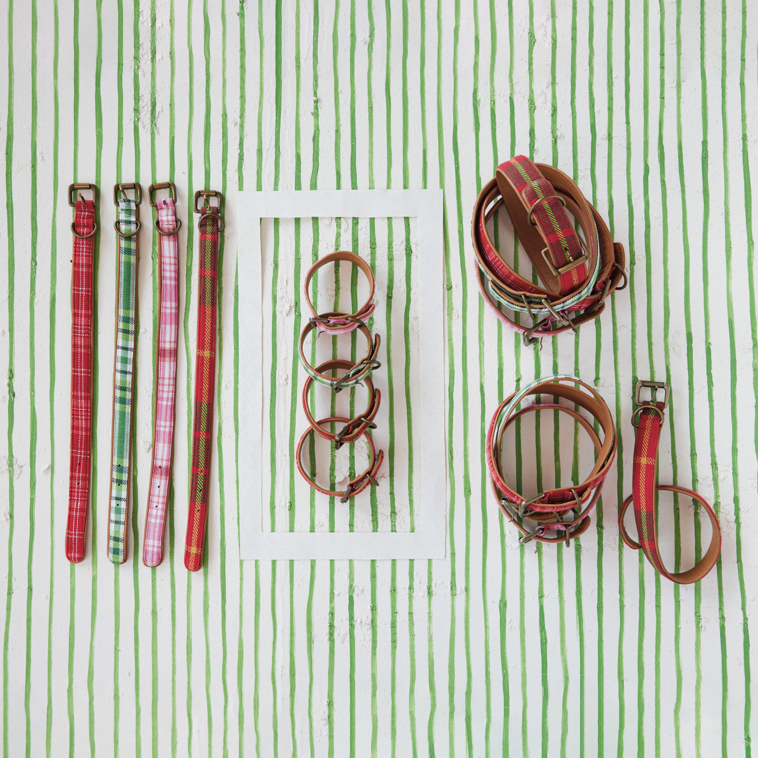 Cotton Flannel & Leather Dog Collar with Metal Buckle, 4 Styles, Small (Each One Will Vary)