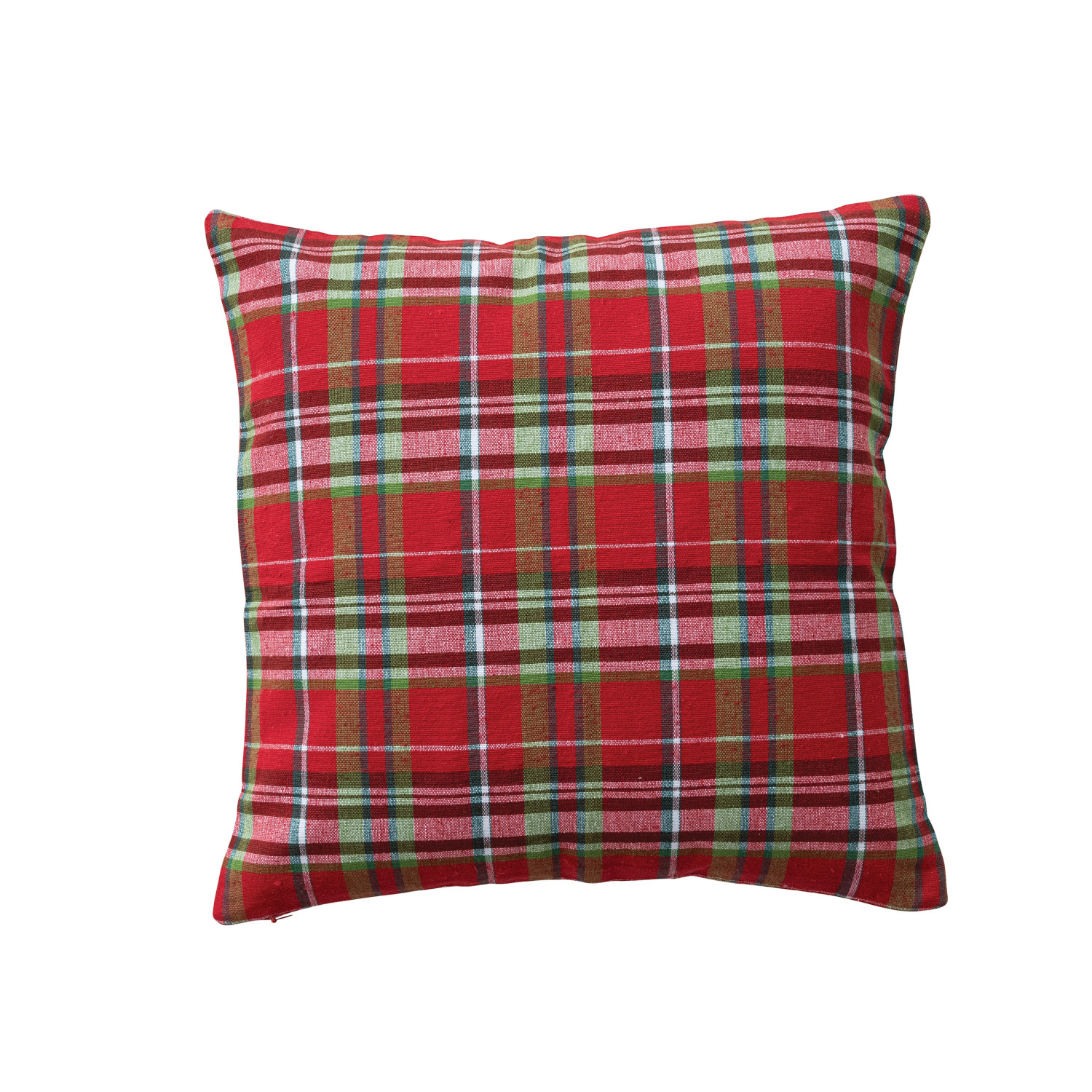 18" Square Woven Cotton Pillow with Tartan Plaid Pattern