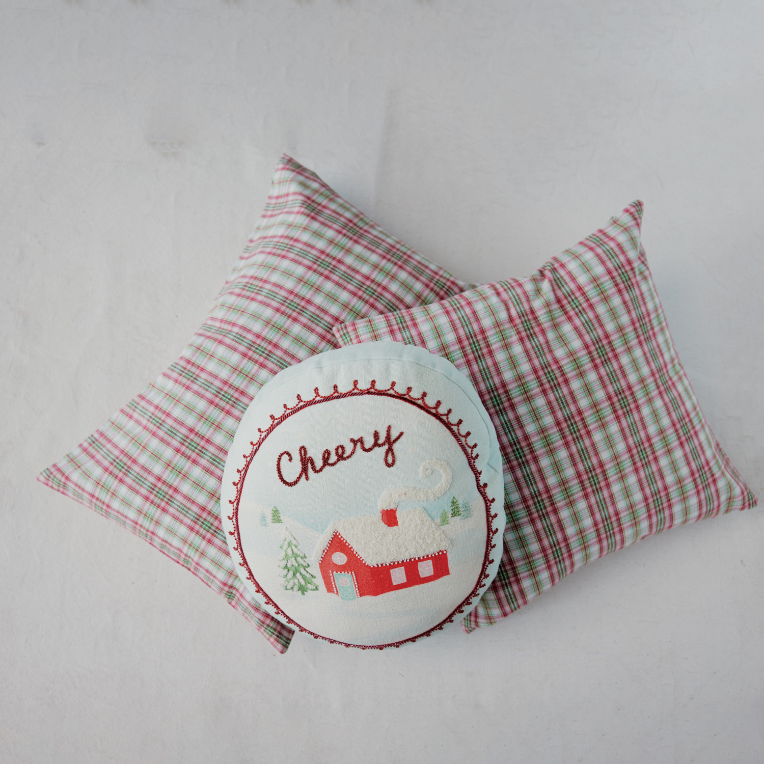 Woven Cotton Lumbar Pillow with Plaid Pattern