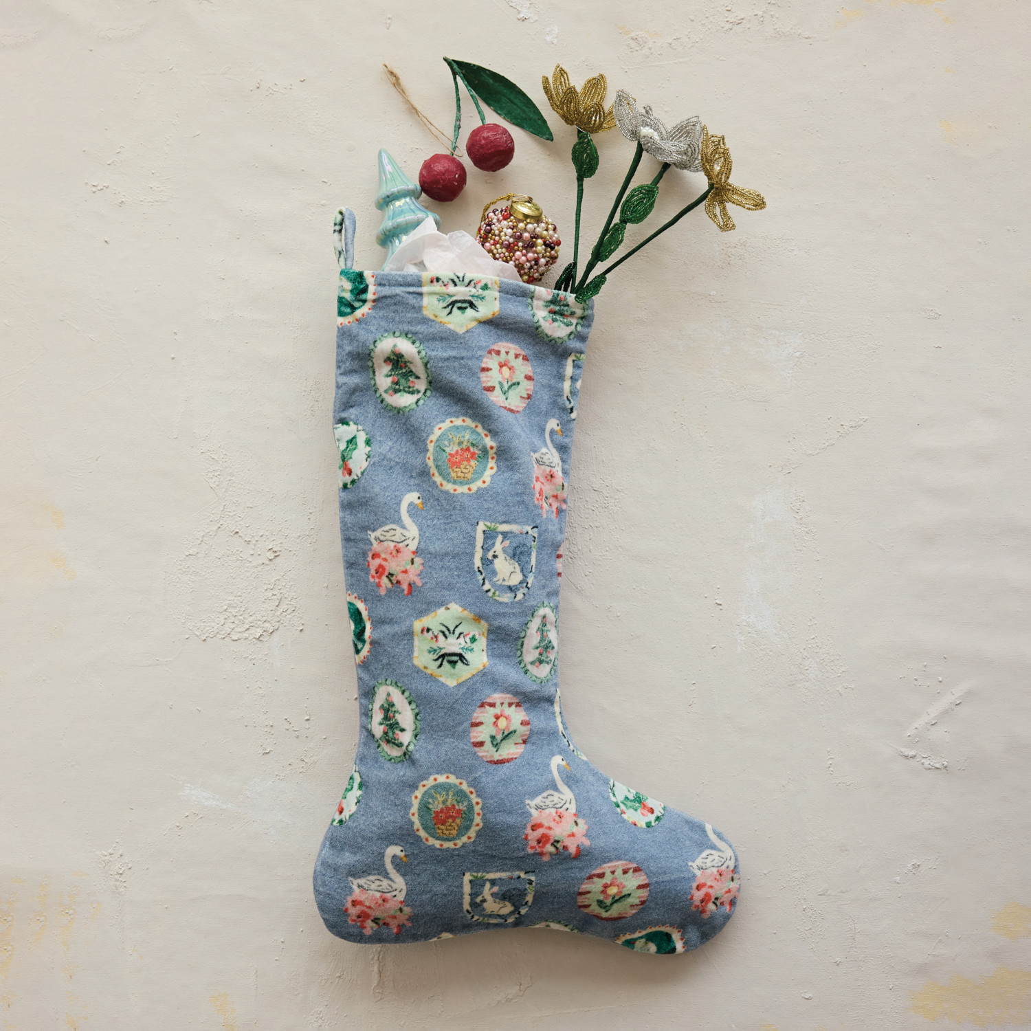 Catalog Name: 20"H Cotton Velvet Printed Stocking w/ Pattern, Multi Color ©
