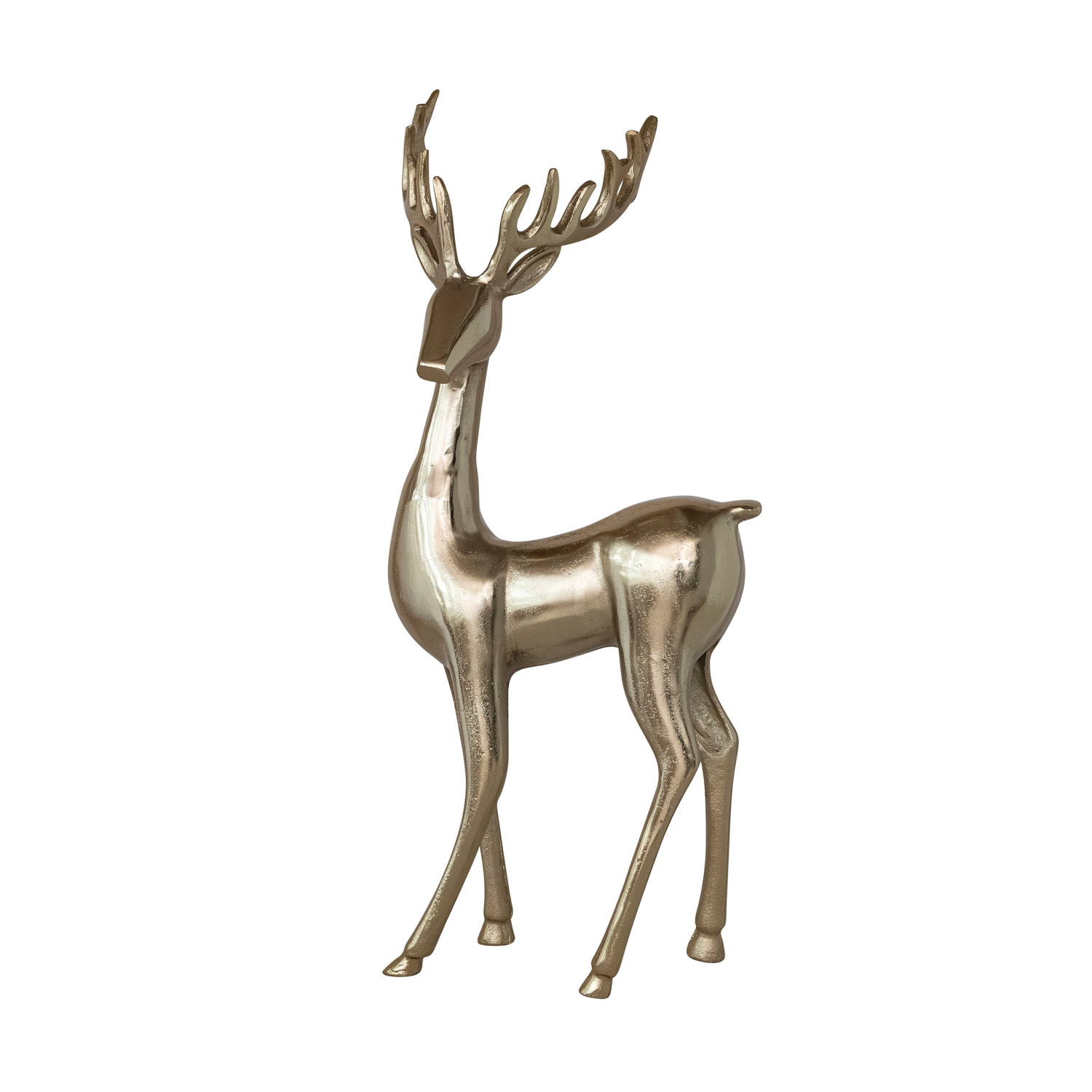 Catalog Name: 12"L x 7"W x 29"H Cast Aluminum Deer, Gold Finish, Truck Ship