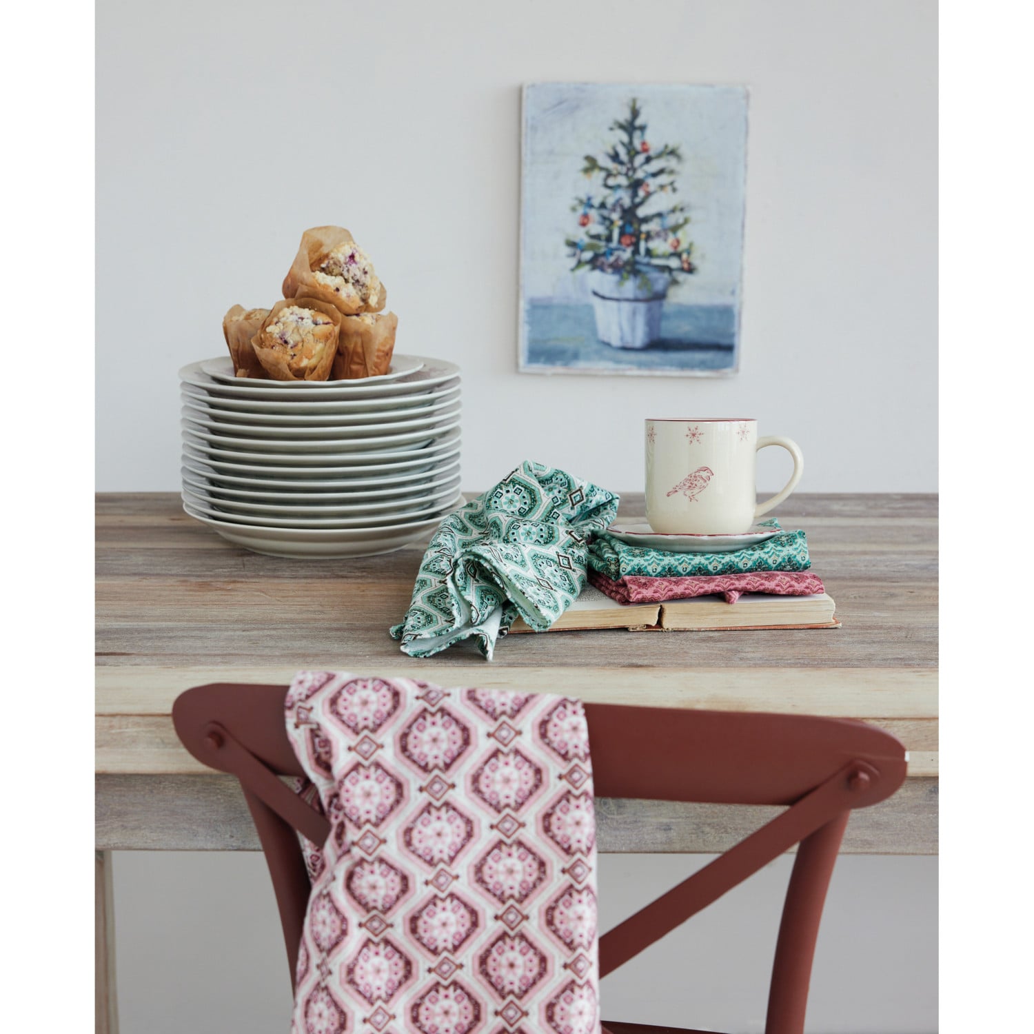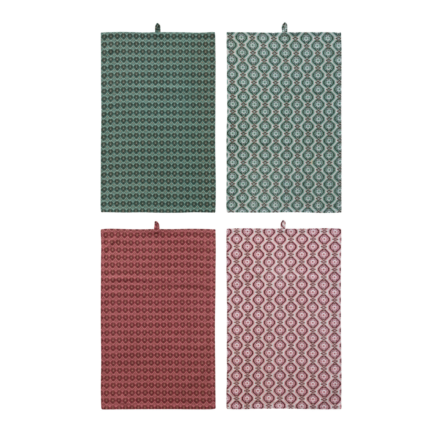 Catalog Name: 28"L x 18"W Cotton Block Printed Tea Towel w/ Pattern, Multi Color, 4 Styles ©