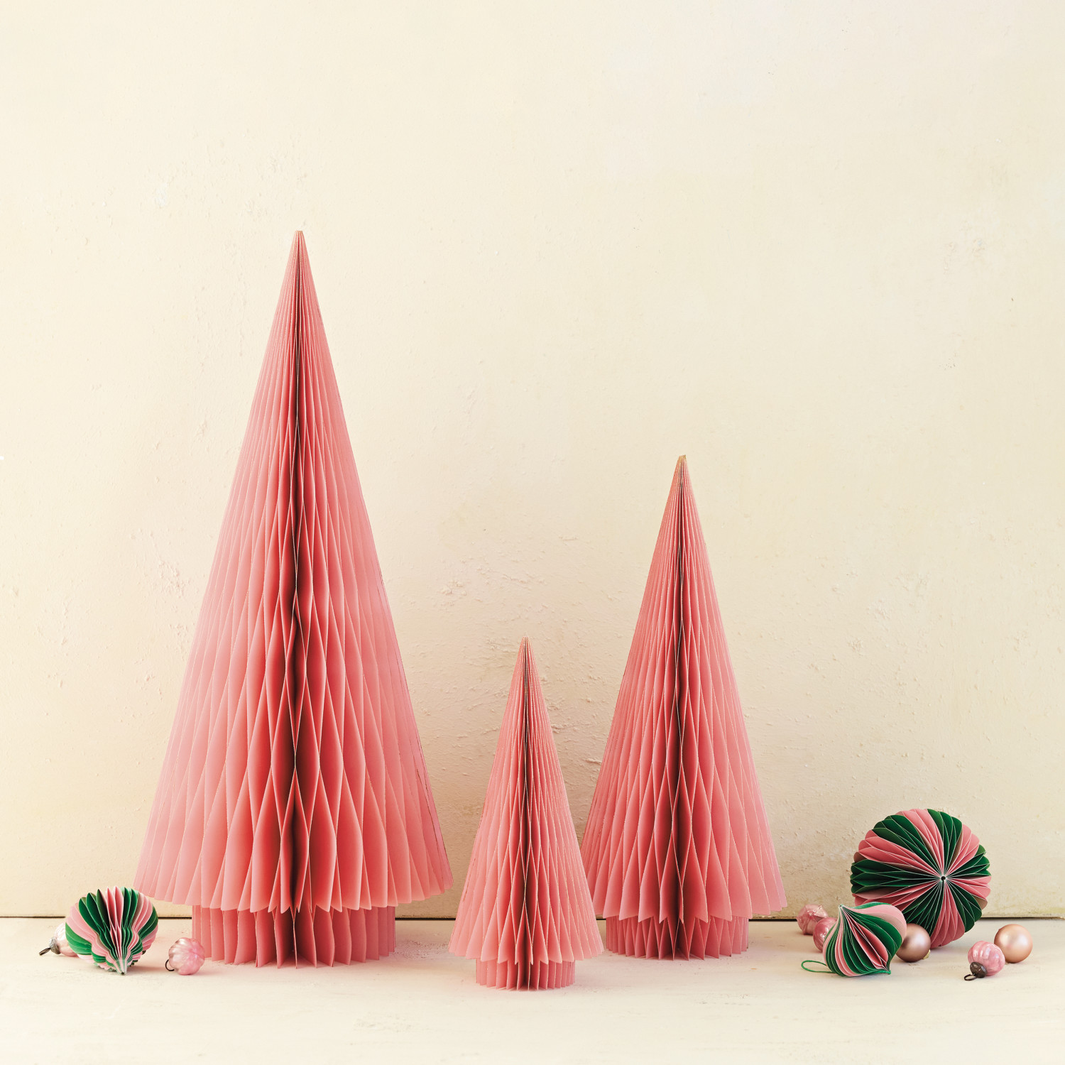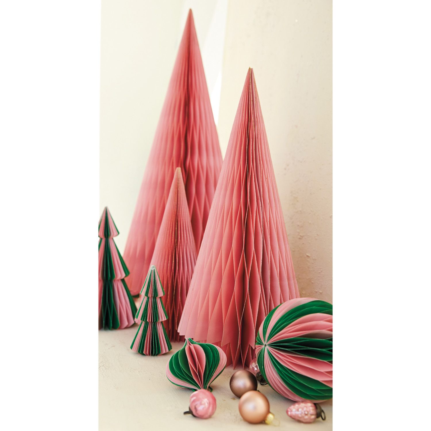 Handmade Recycled Paper Folding Honeycomb Tree with Gold Glitter Edges, Pink