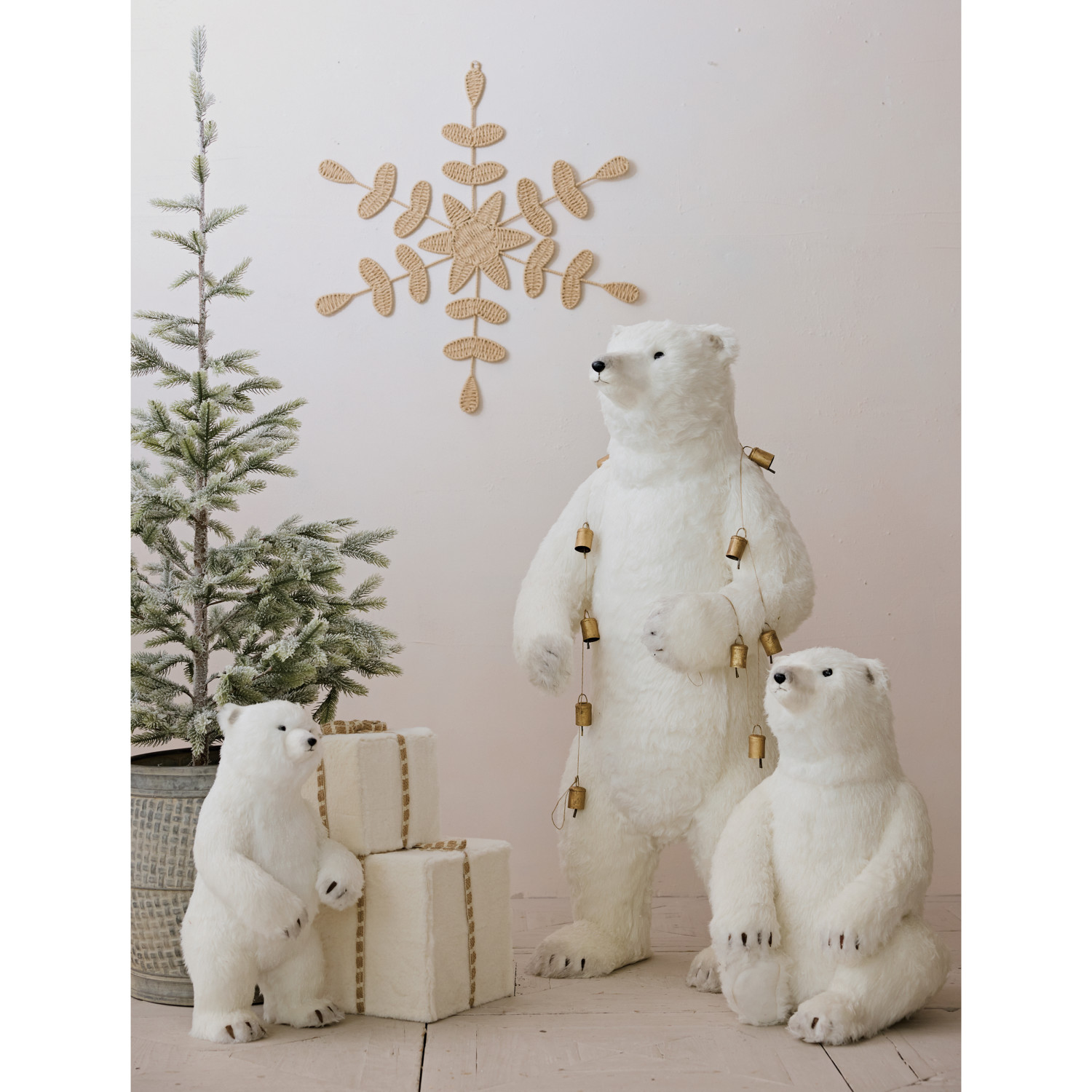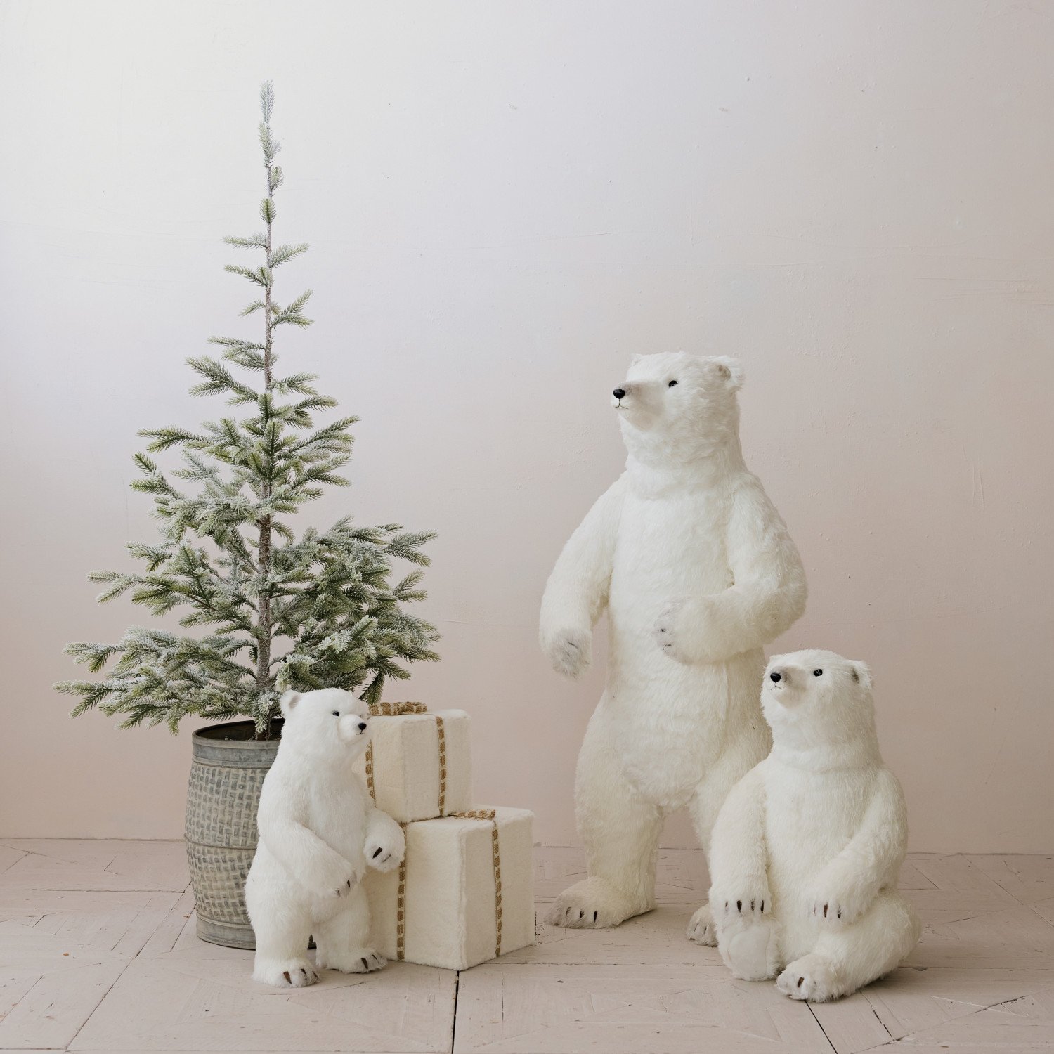 Faux Fur & Foam Standing Polar Bear, White & Black