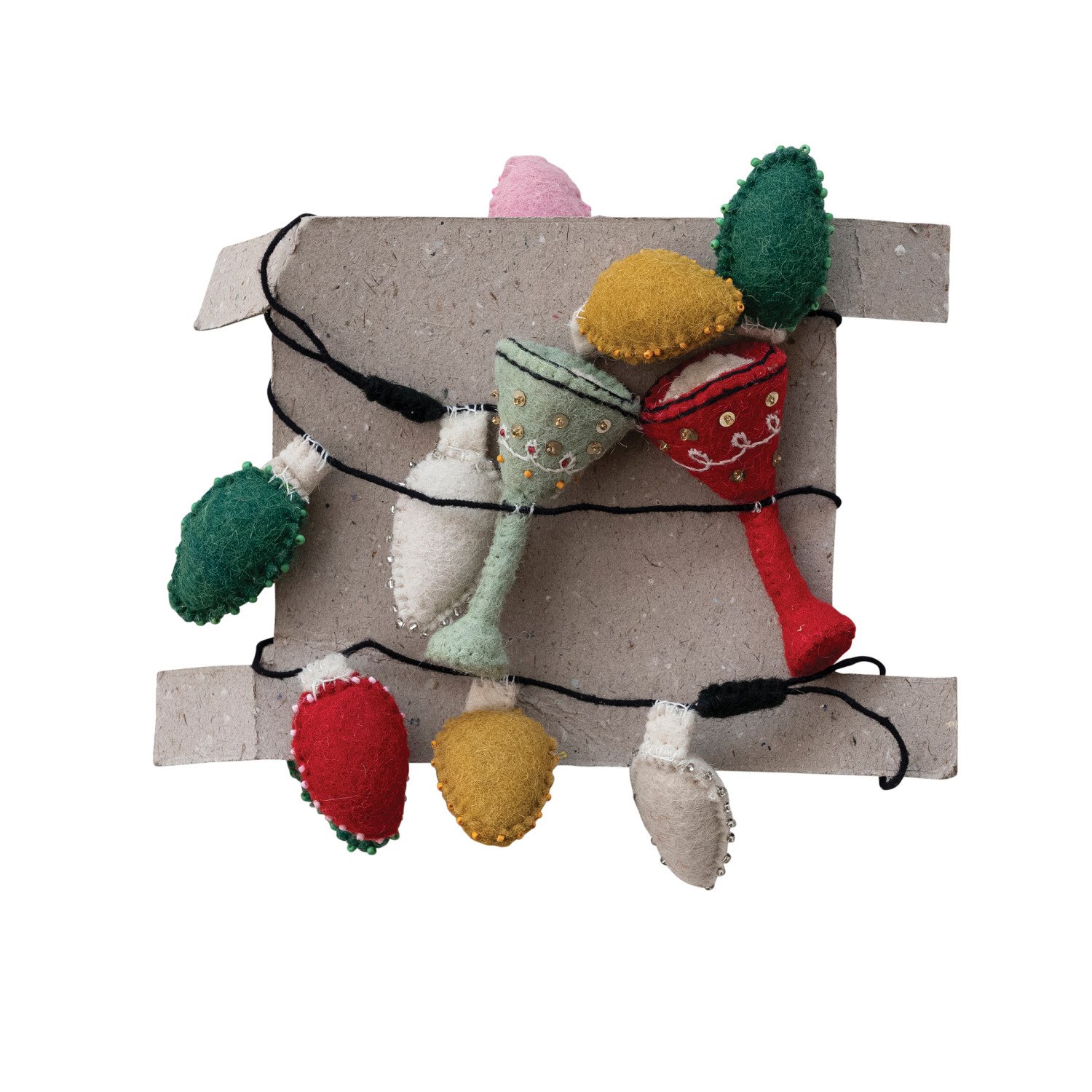 Catalog Name: 36"L x 3-1/2"H Handmade Wool Felt Lights & Cocktails Garland w/ Embroidery & Beads, Multi Color