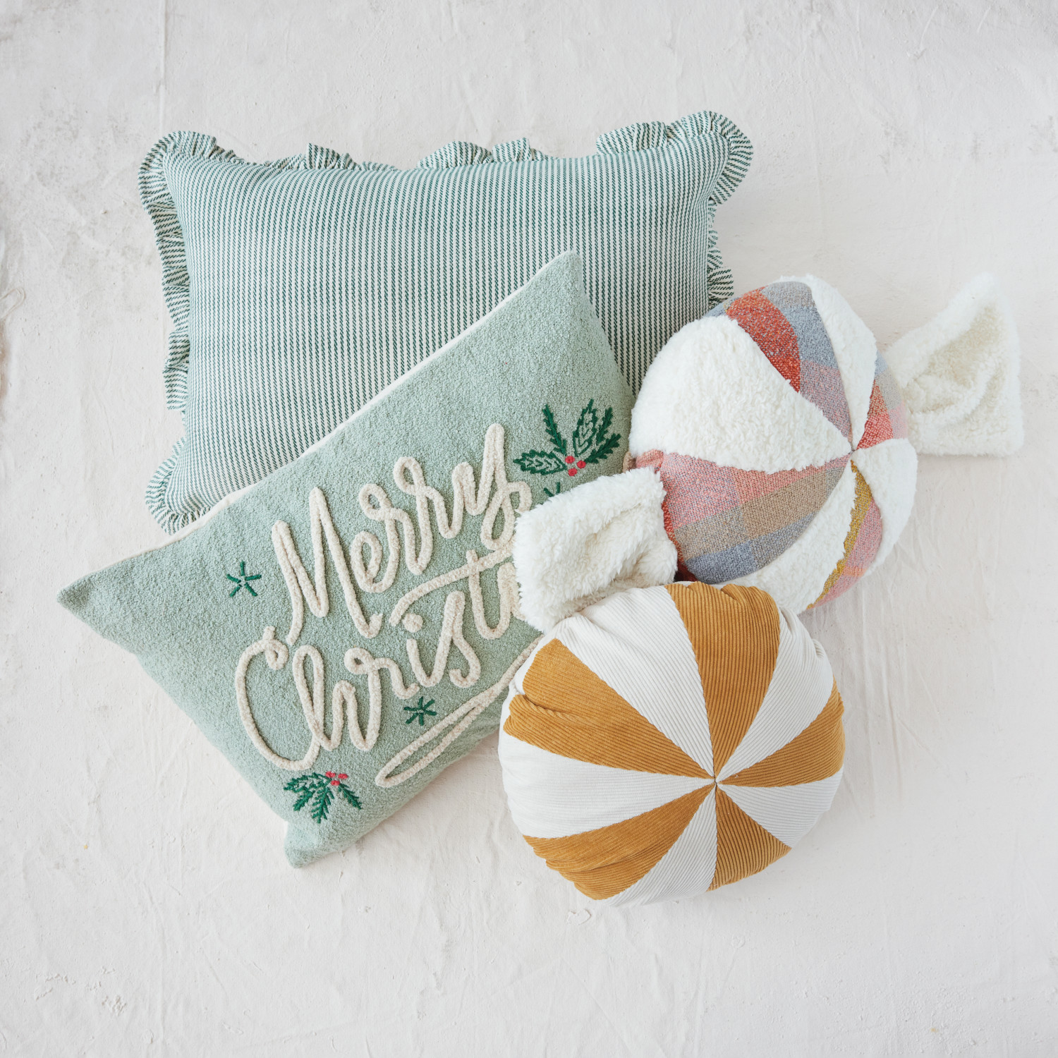 Catalog Name: 24"L x 16"H Woven Cotton Striped Lumbar Pillow w/ Ruffle, Cream Color & Green