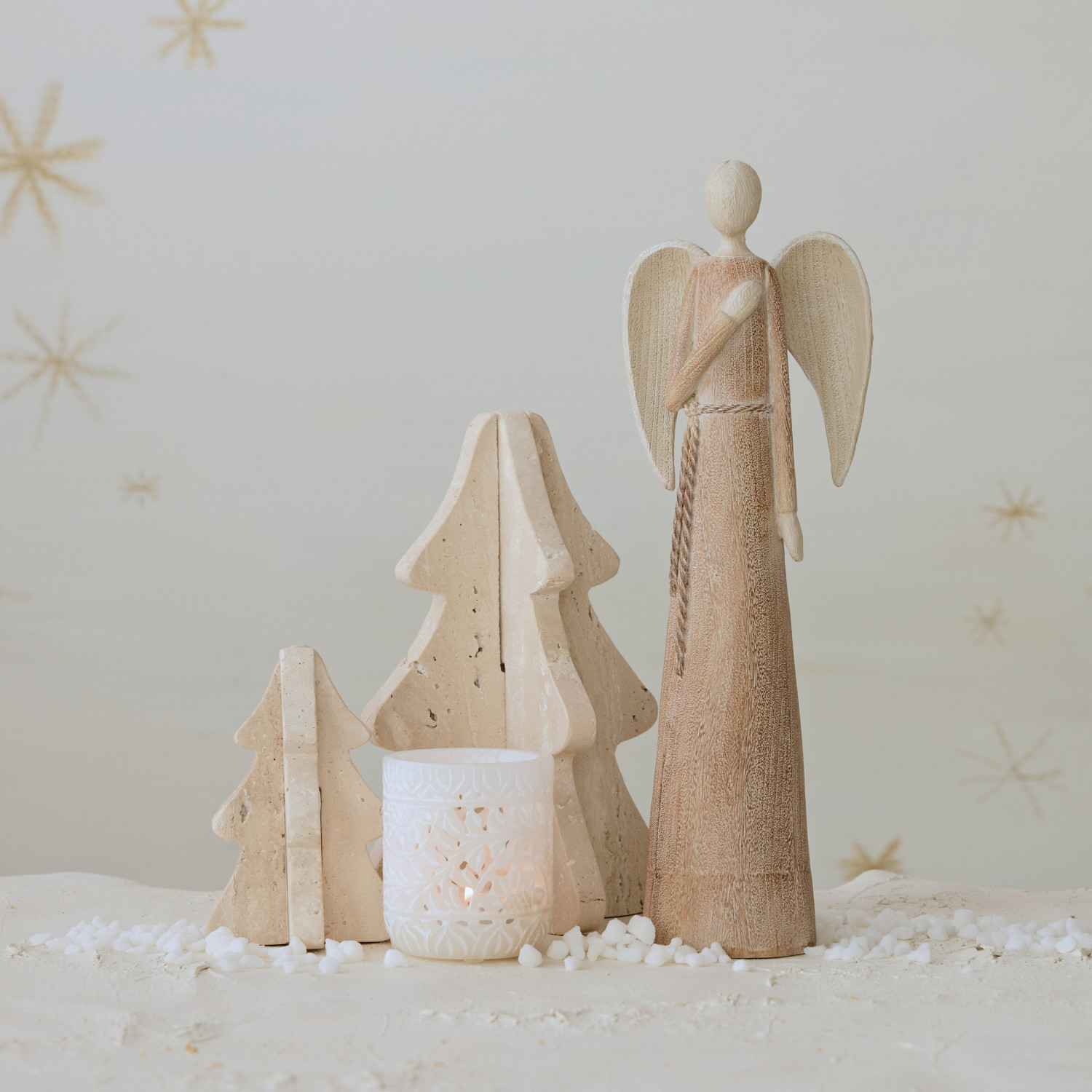 Catalog Name: 6" Round x 9"H Interlocking Travertine Tree, Natural
