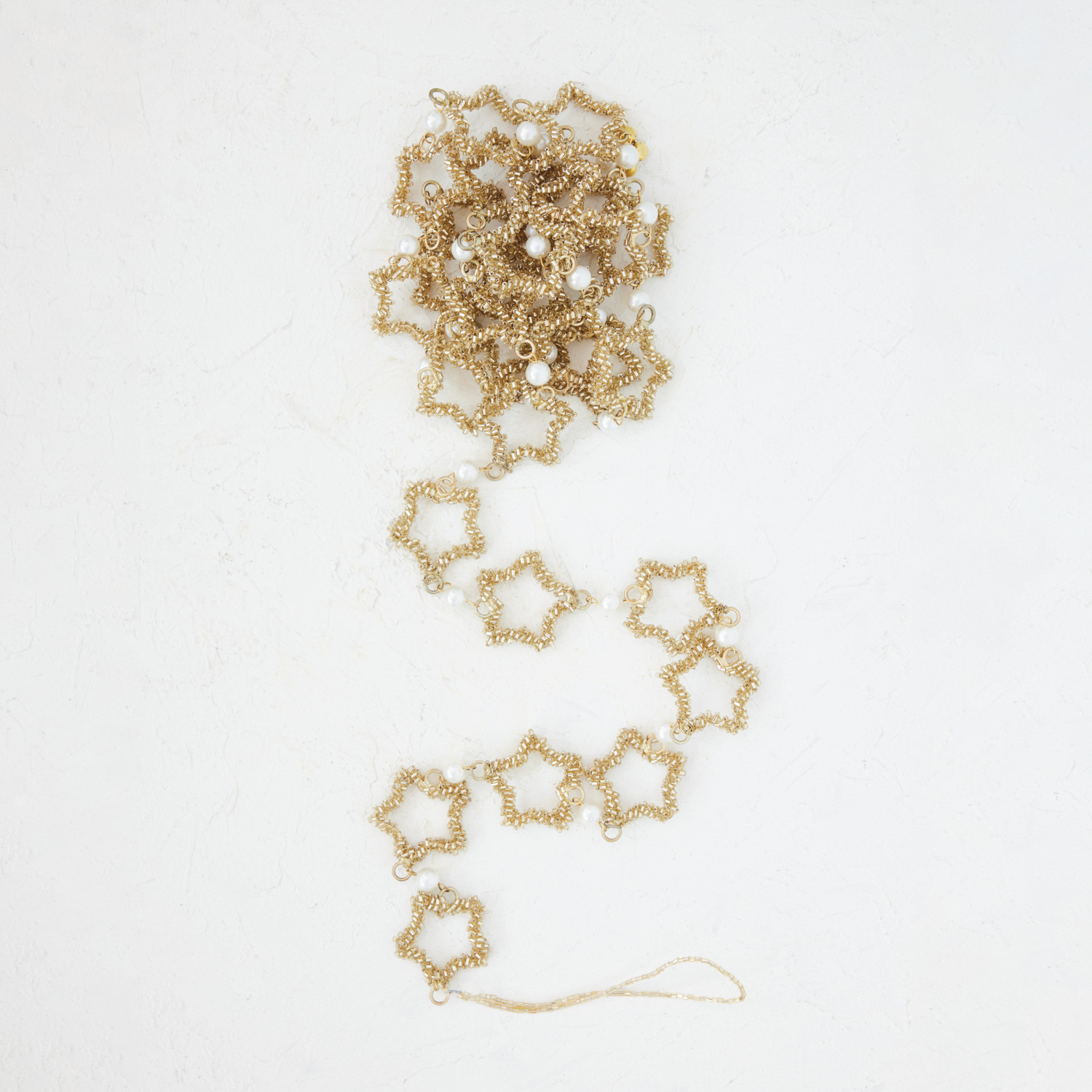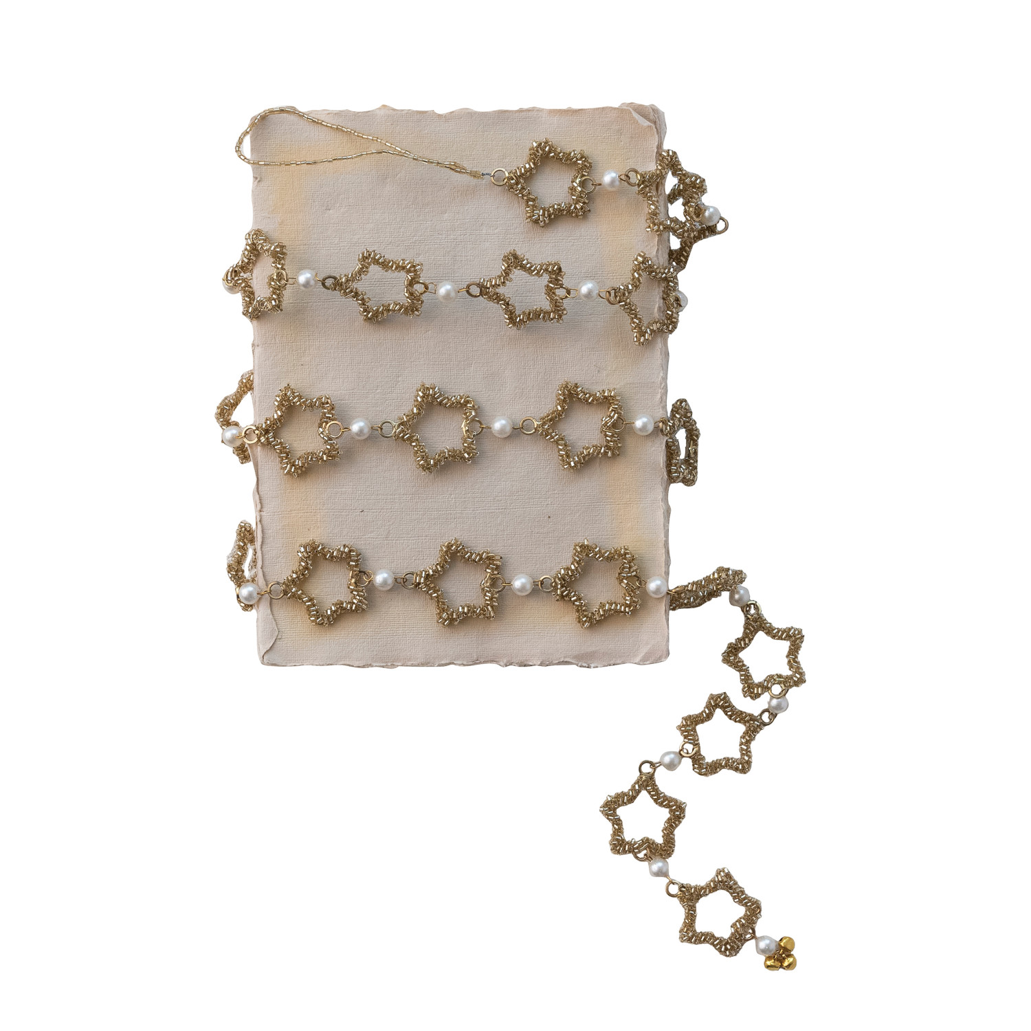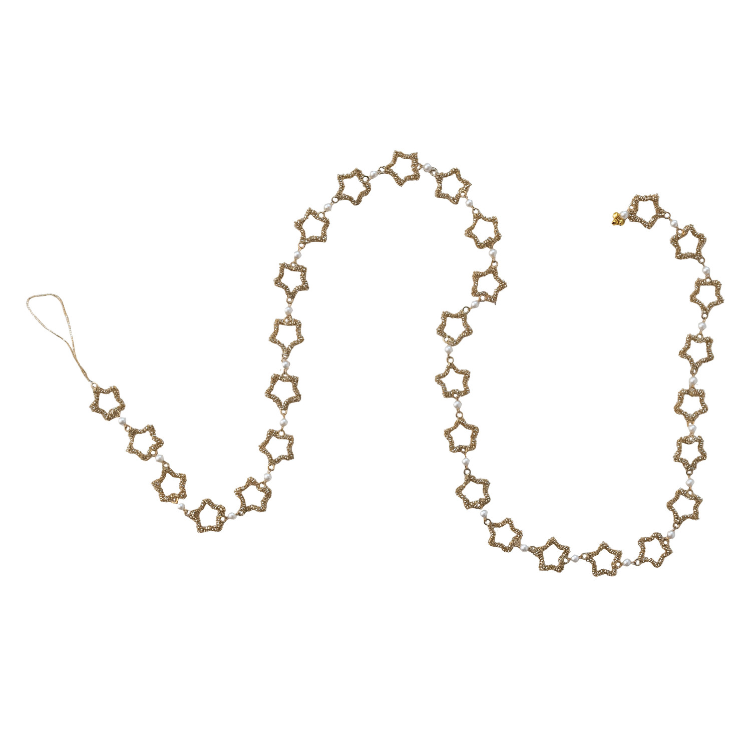 Metal & Glass Beaded Star Garland with Faux Pearls, Gold Finish