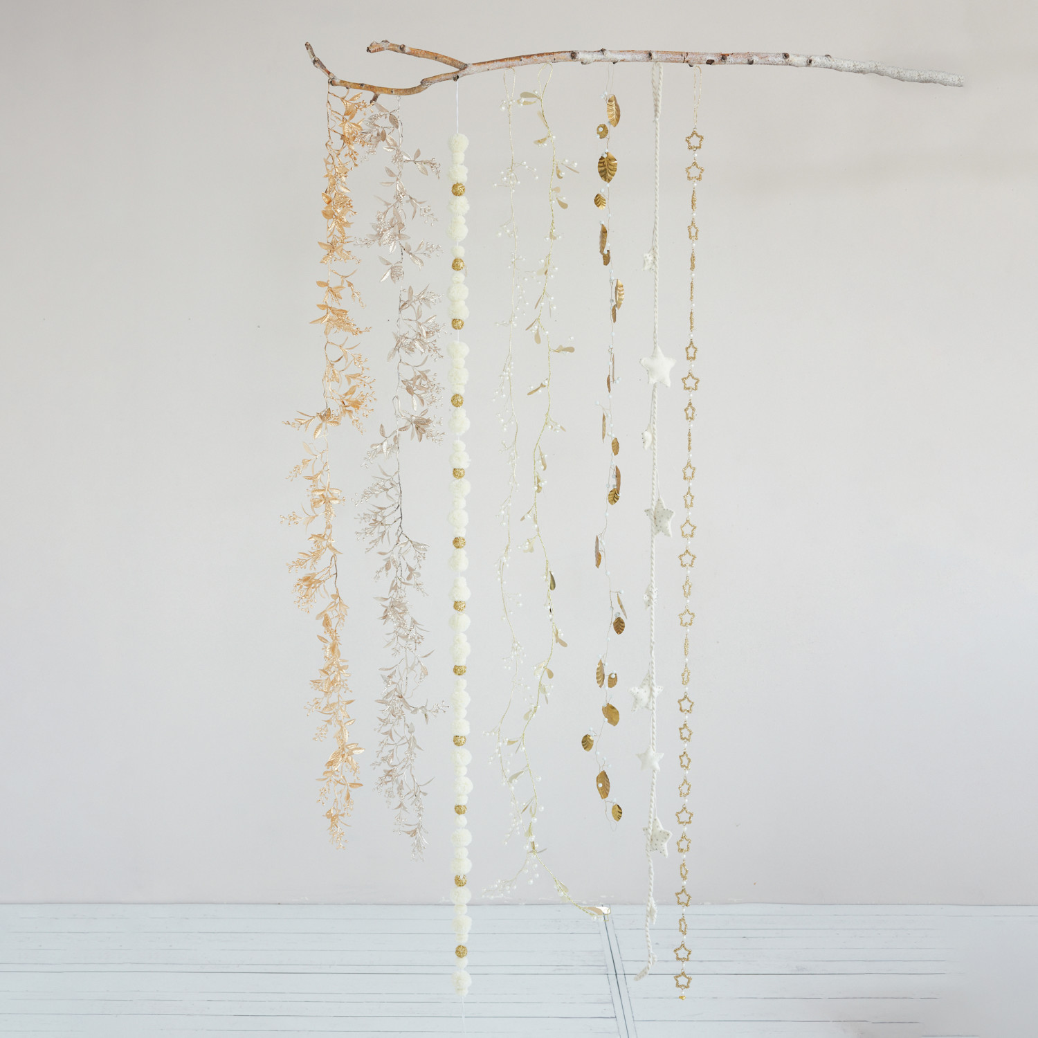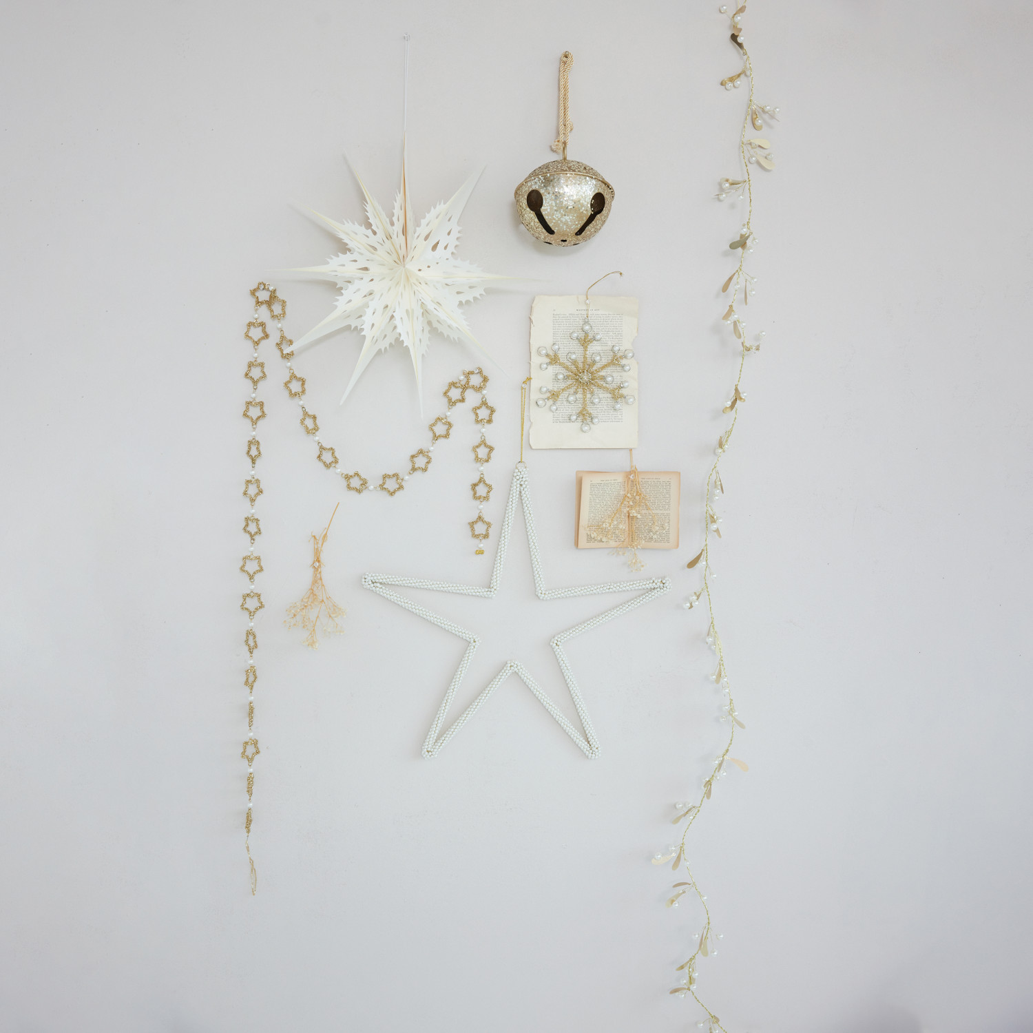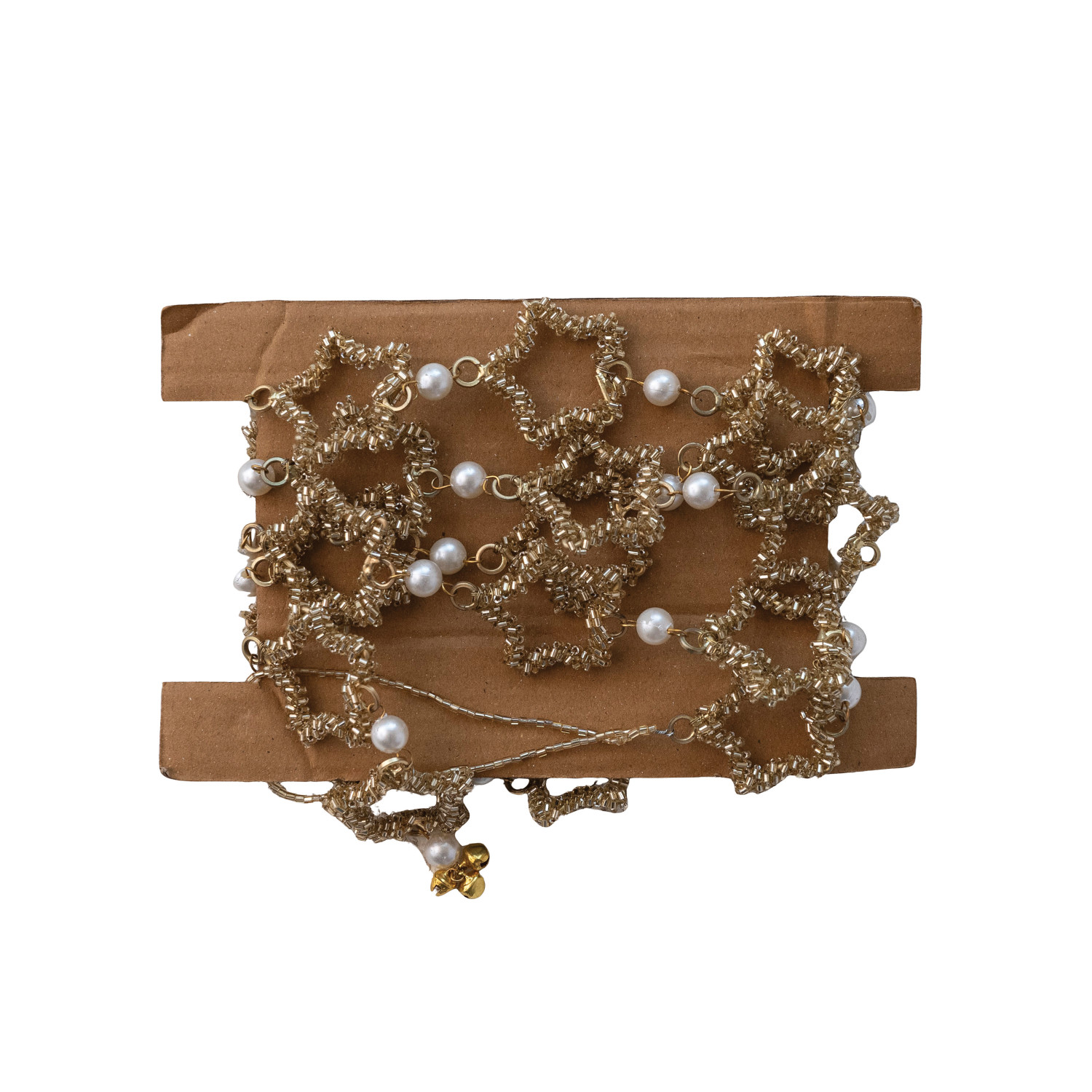 Metal & Glass Beaded Star Garland with Faux Pearls, Gold Finish
