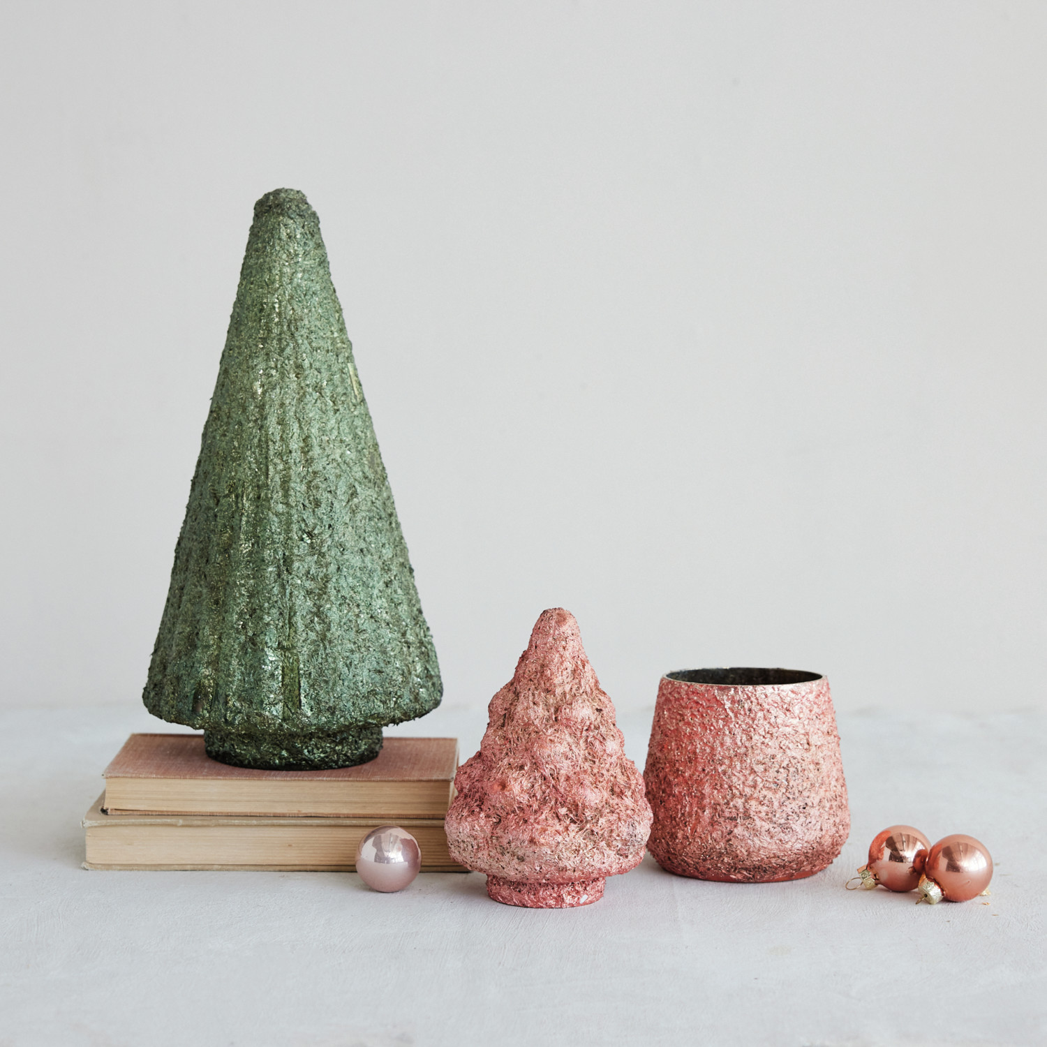 Catalog Name: 6-1/2" Round x 12-1/2"H Foiled Fluted Glass Tree, Green