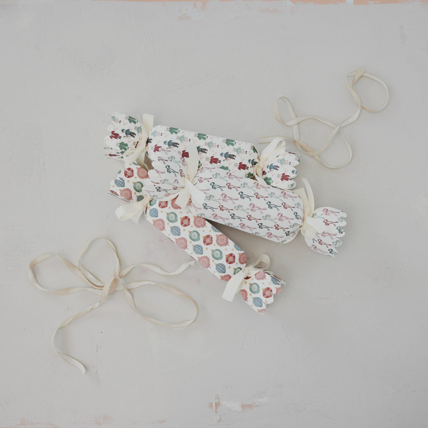 Handmade Printed Recycled Paper Candy Shaped Gift Box with Ribbon Ties, 3 Styles ©