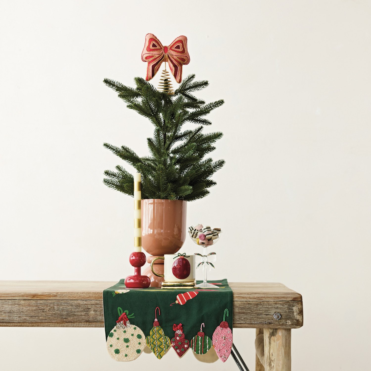 Cotton Printed Table Runner with Ornaments, Embroidery, Beads & Ornament Shaped Edge ©