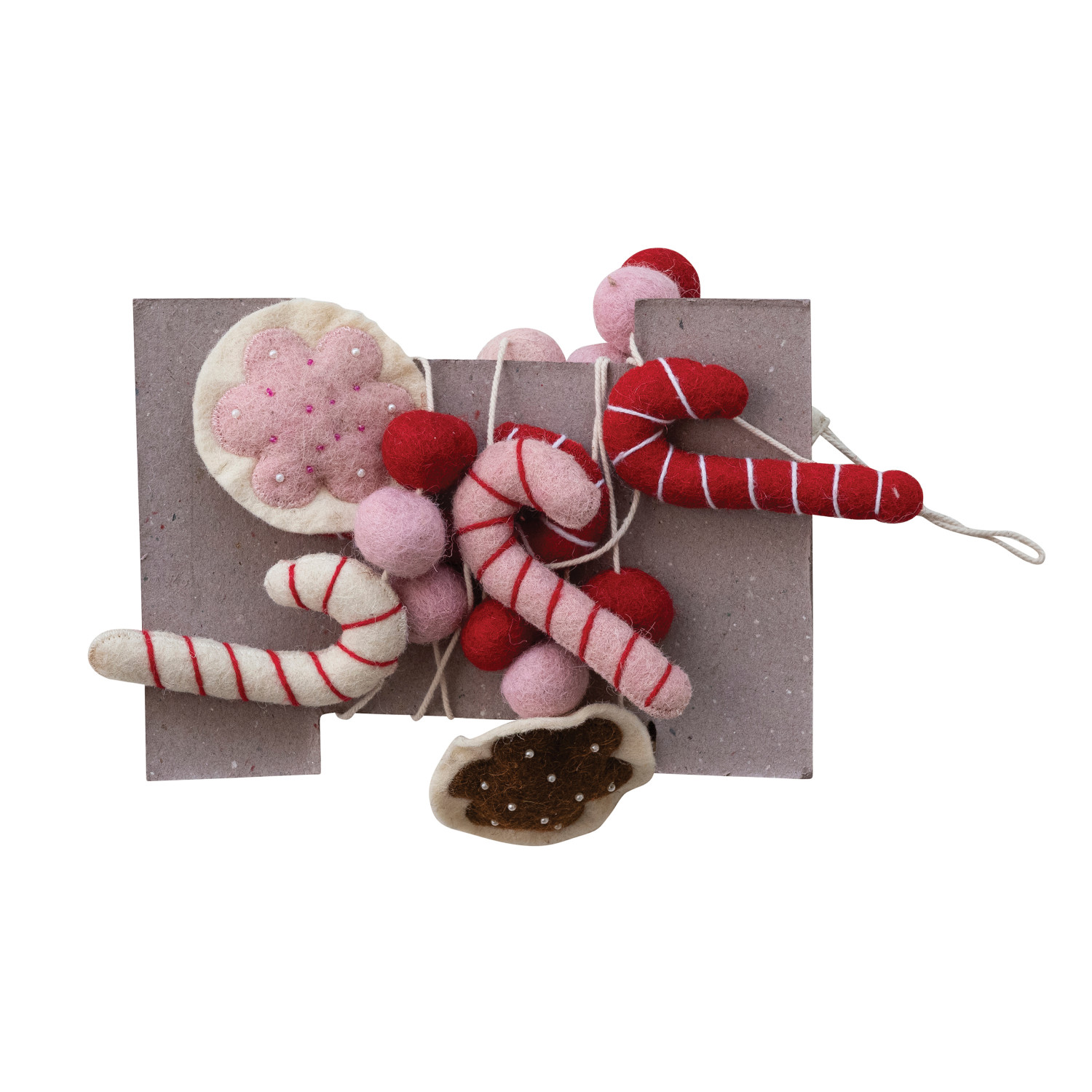 Catalog Name: 72"L x 4-1/4"H Handmade Wool Felt Candy Cane & Cookie Garland w/ Embroidery, Multi Color