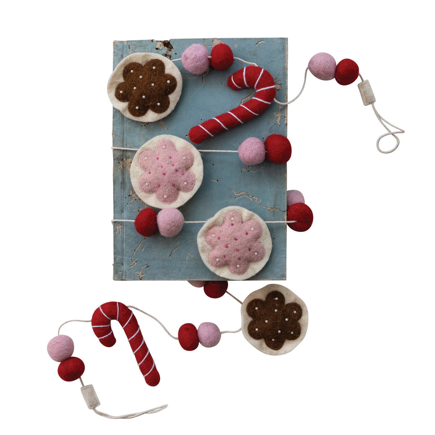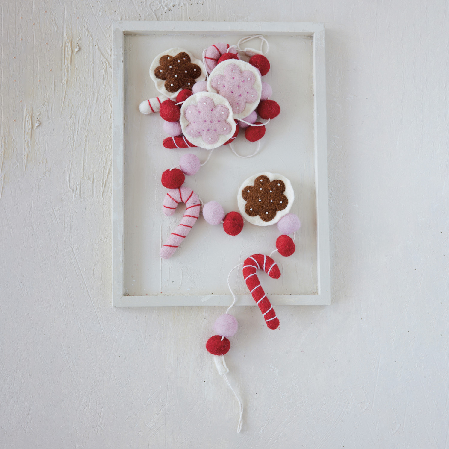 Handmade Wool Felt Candy Cane & Cookie Garland with Embroidery