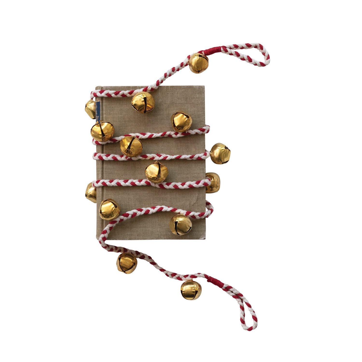 Metal Jingle Bell Garland with Red & White Braided Cord, Gold Finish