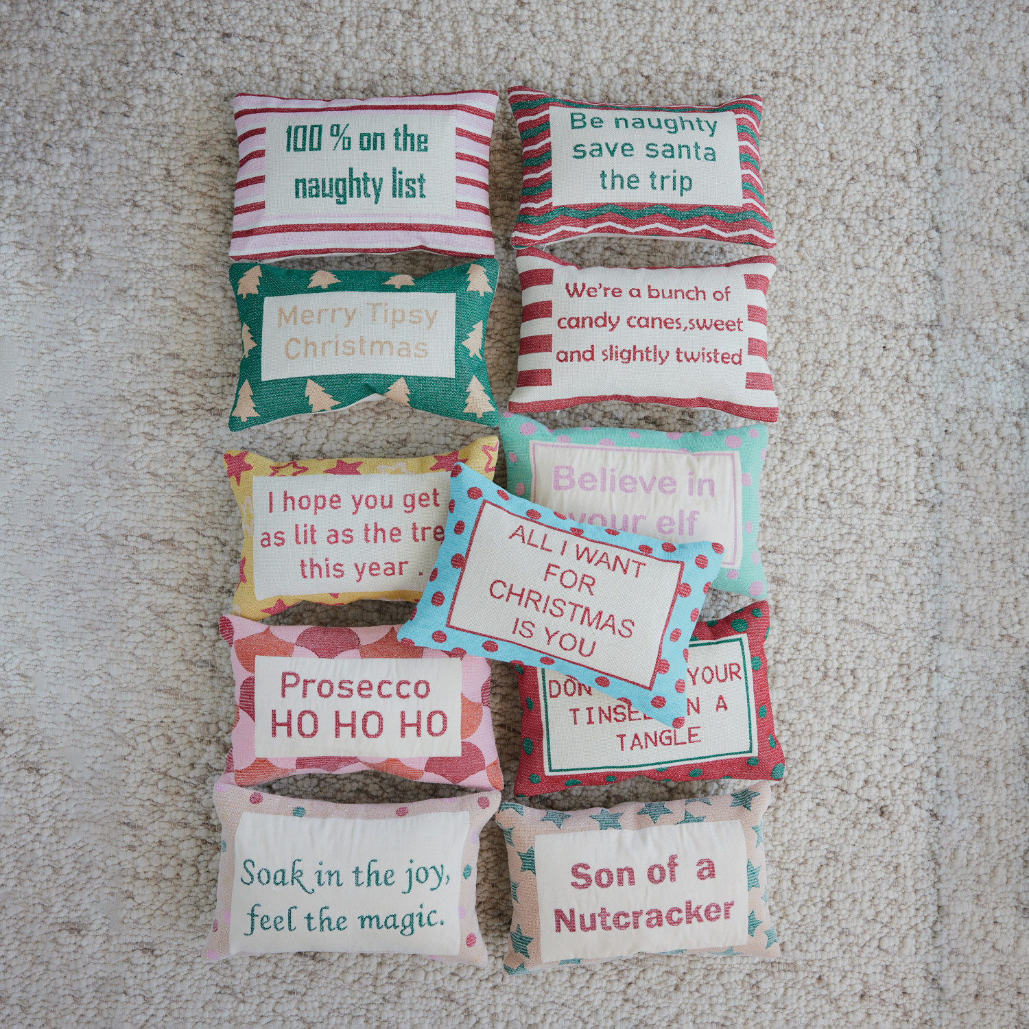 Catalog Name: 14"L x 9"H Cotton & Velvet Embroidered Lumbar Pillow w/ Star Pattern "Son Of A Nutcracker", Multi Color