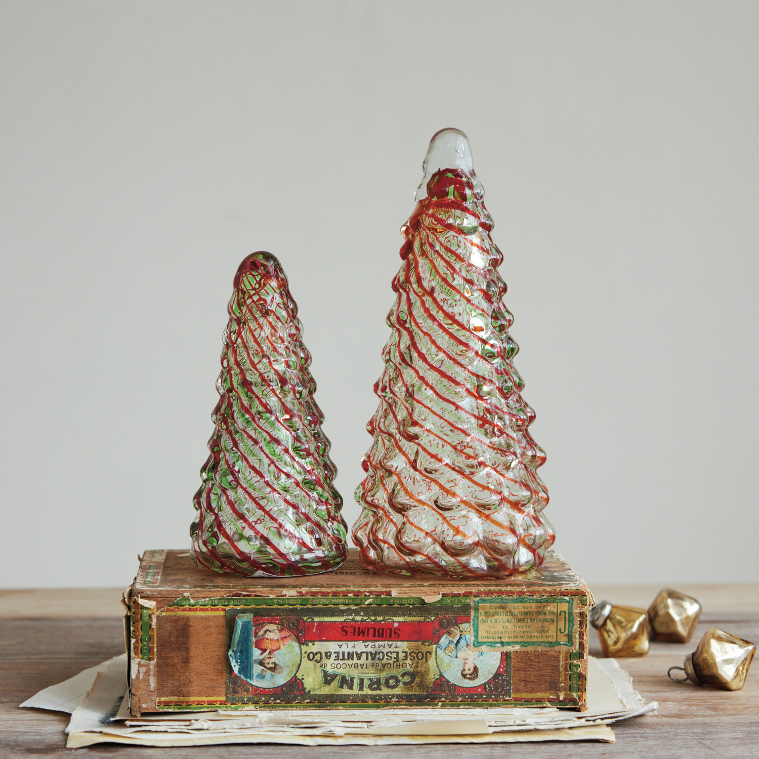 Hand-Blown Art Glass Tree with Candy Stripes, Red & Green