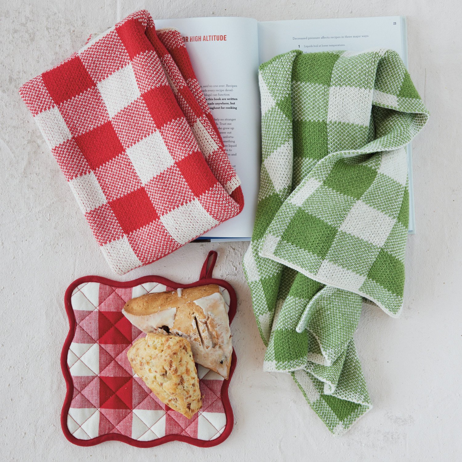Cotton Knit Tea Towel with Buffalo Check Pattern, 2 Colors