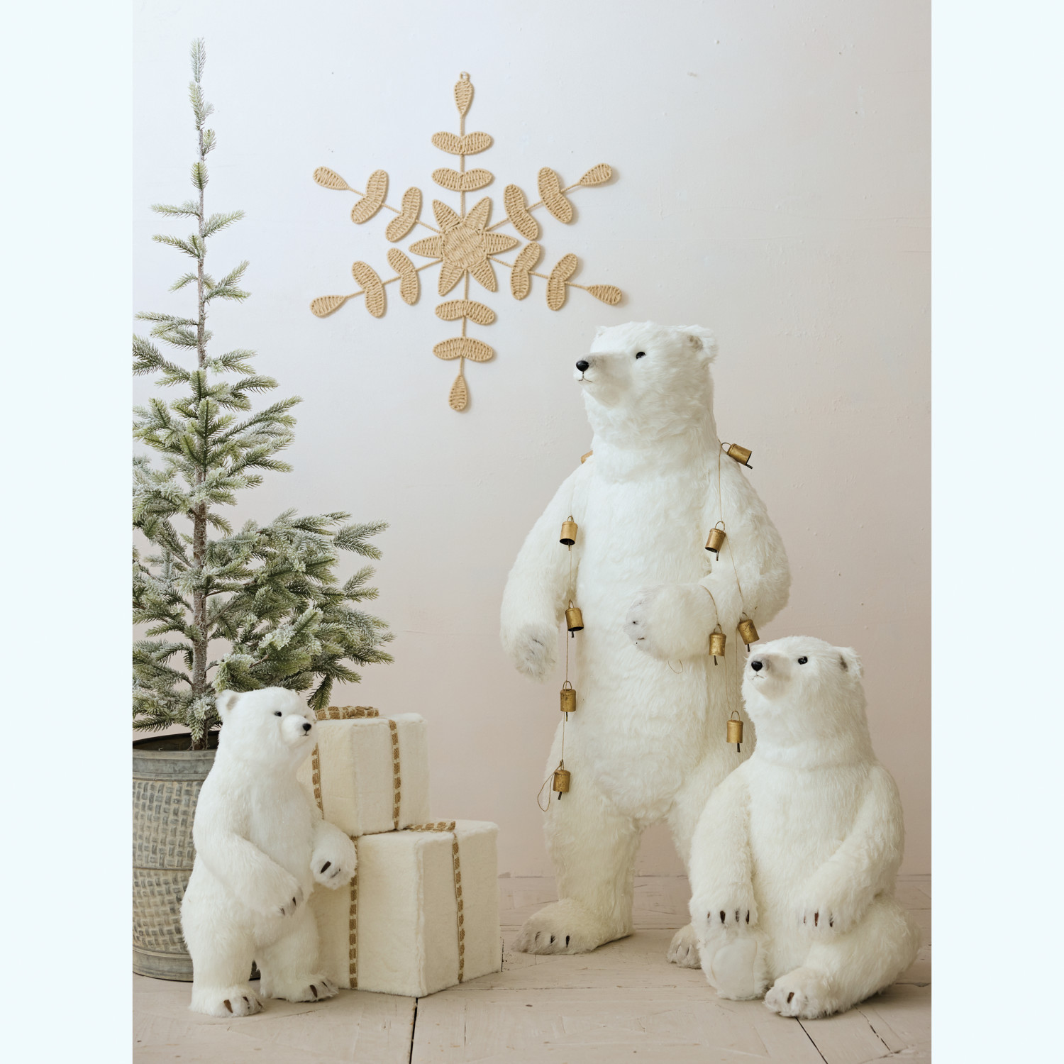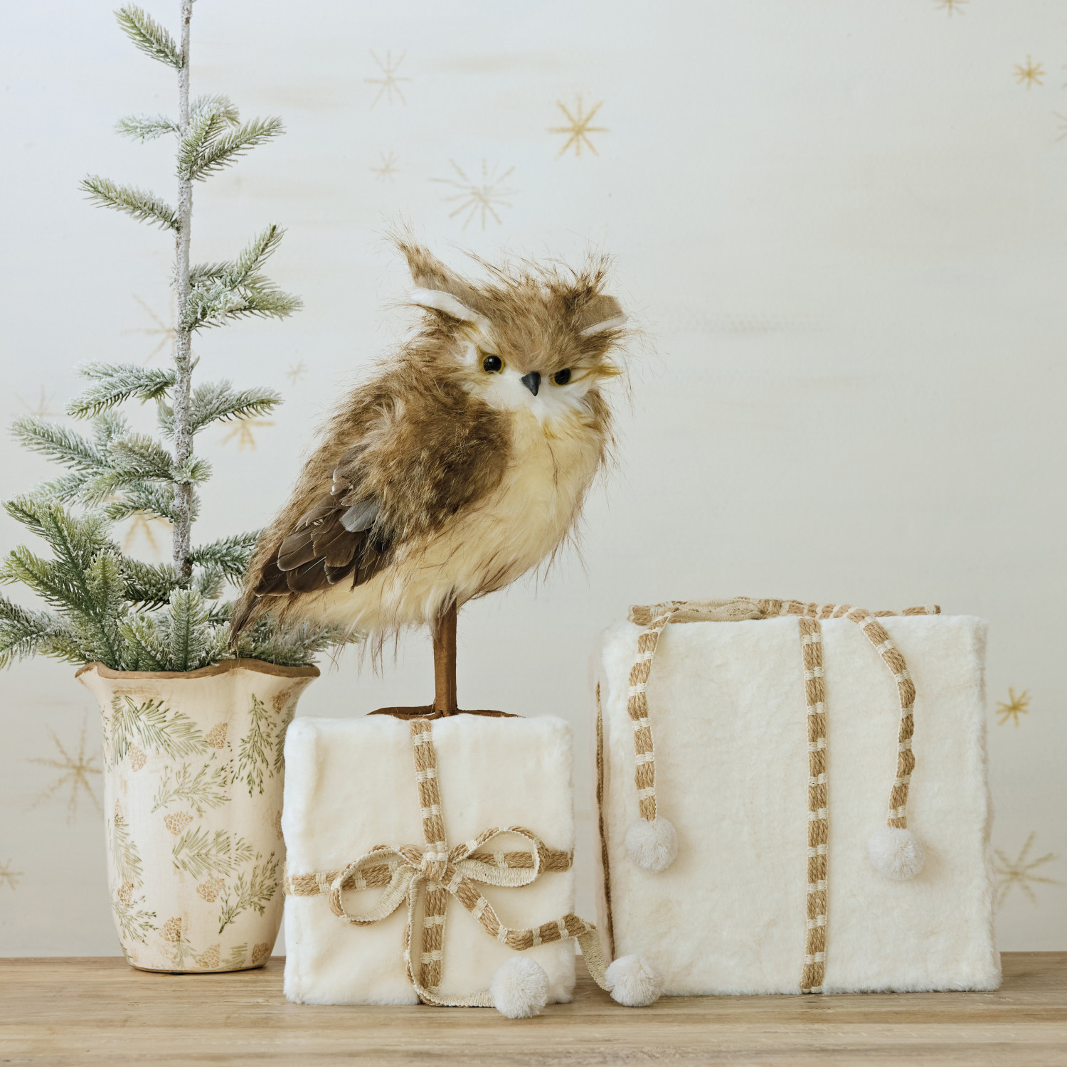 Decorative Fabric & Foam Gift Boxes with Knit Bows & Pom Poms, White & Natural, Set of 2