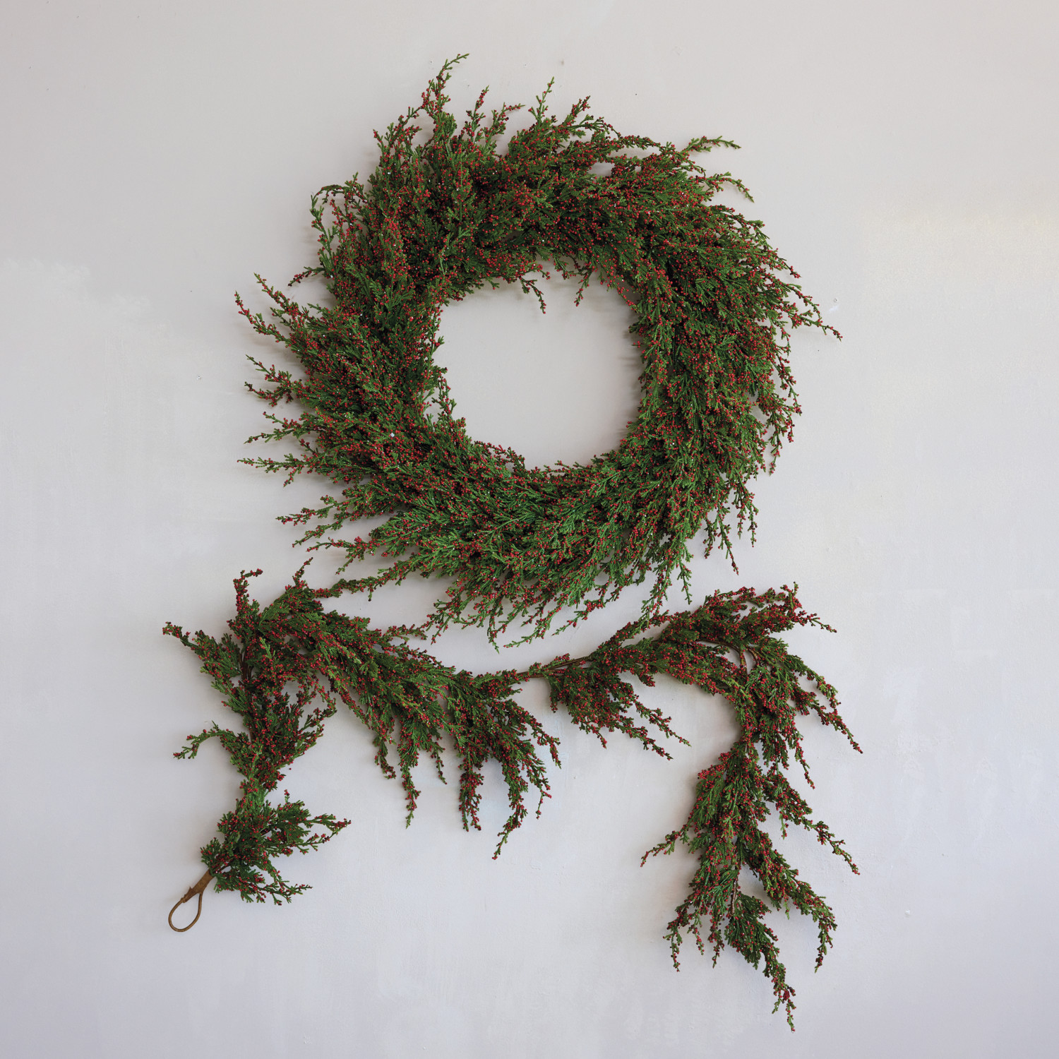 Faux Cypress Garland with Red Berries