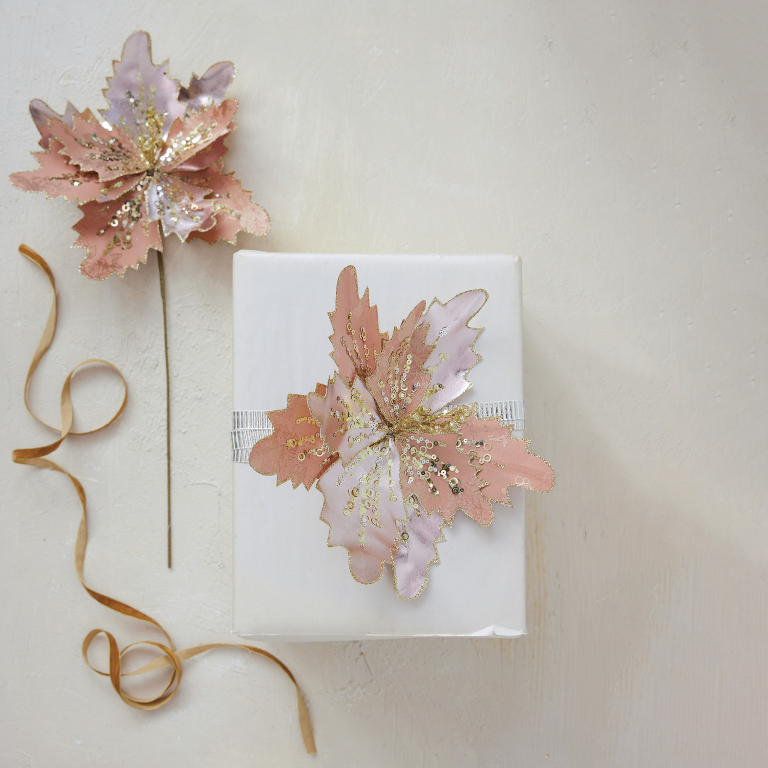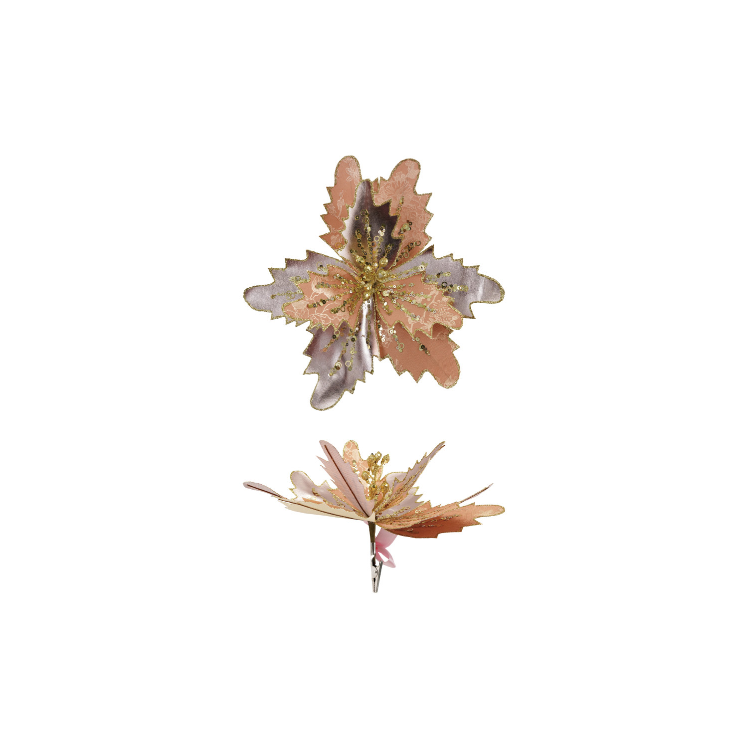 Faux Flower Clip-on Ornament with Glitter, Gold Finish & Blush Color