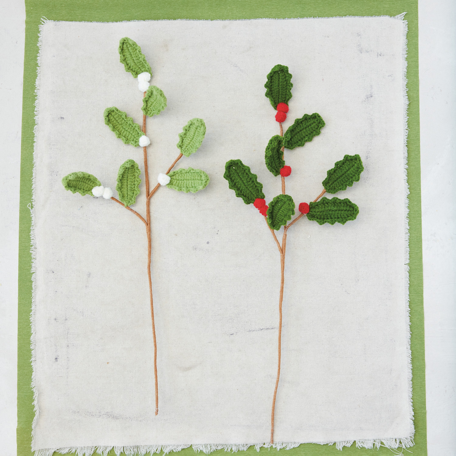 Catalog Name: 18-1/2"H Crocheted Holly Spray, 2 Colors