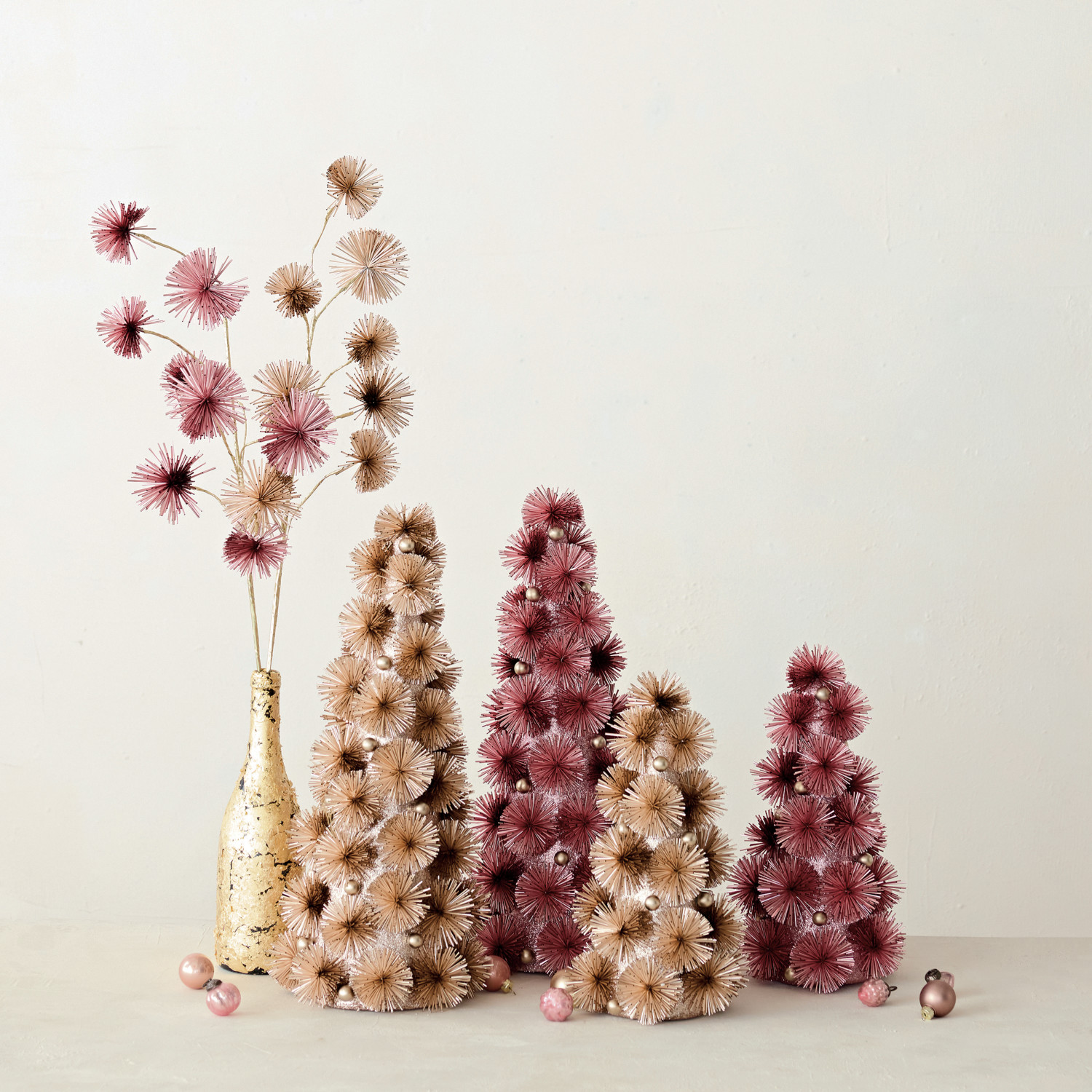 Plastic Tinsel Ball Tree with Glitter & Silver Color Beads, Blush Color