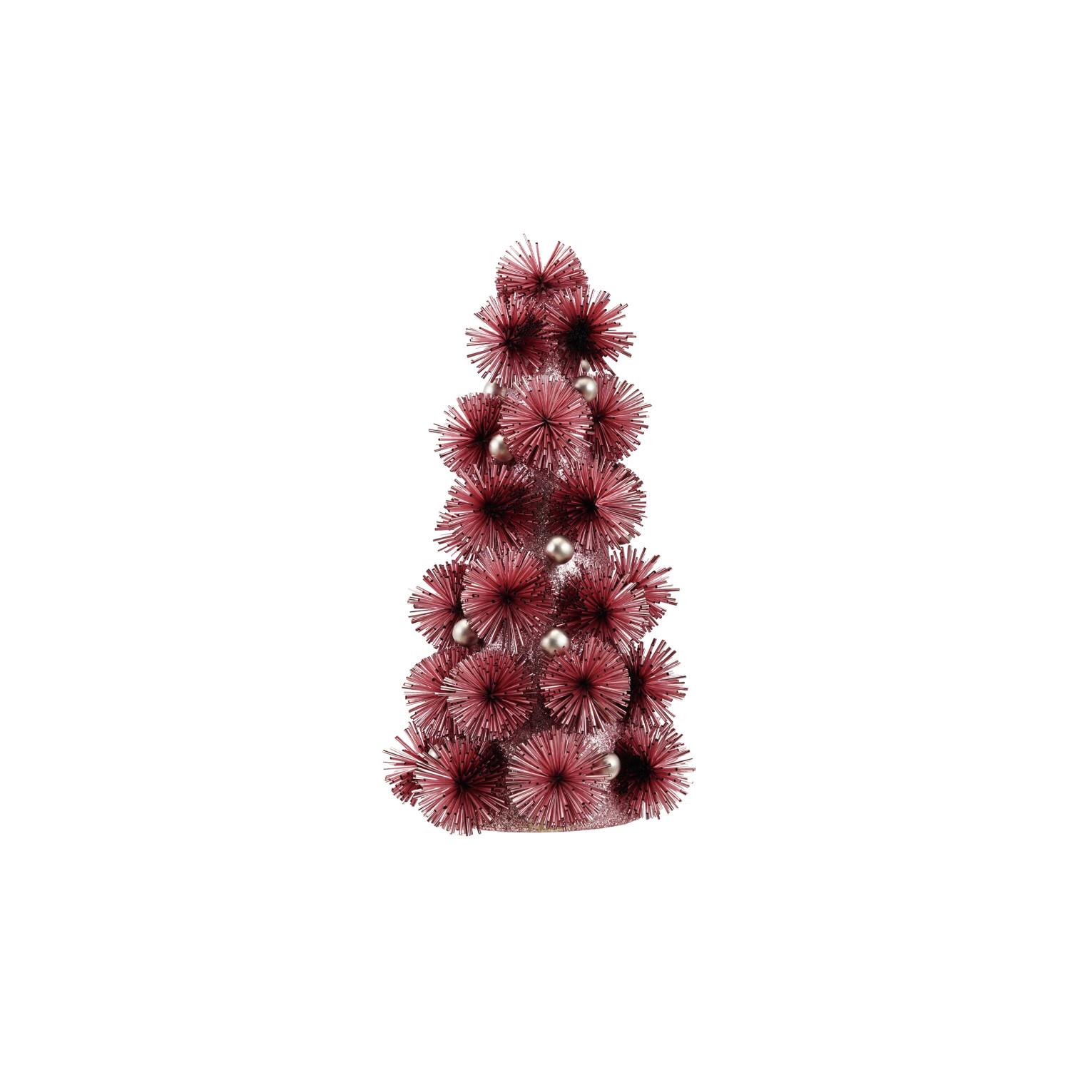Catalog Name: 7-1/2" Round x 13"H Plastic Tinsel Ball Tree w/ Glitter & Silver Color Beads, Pink