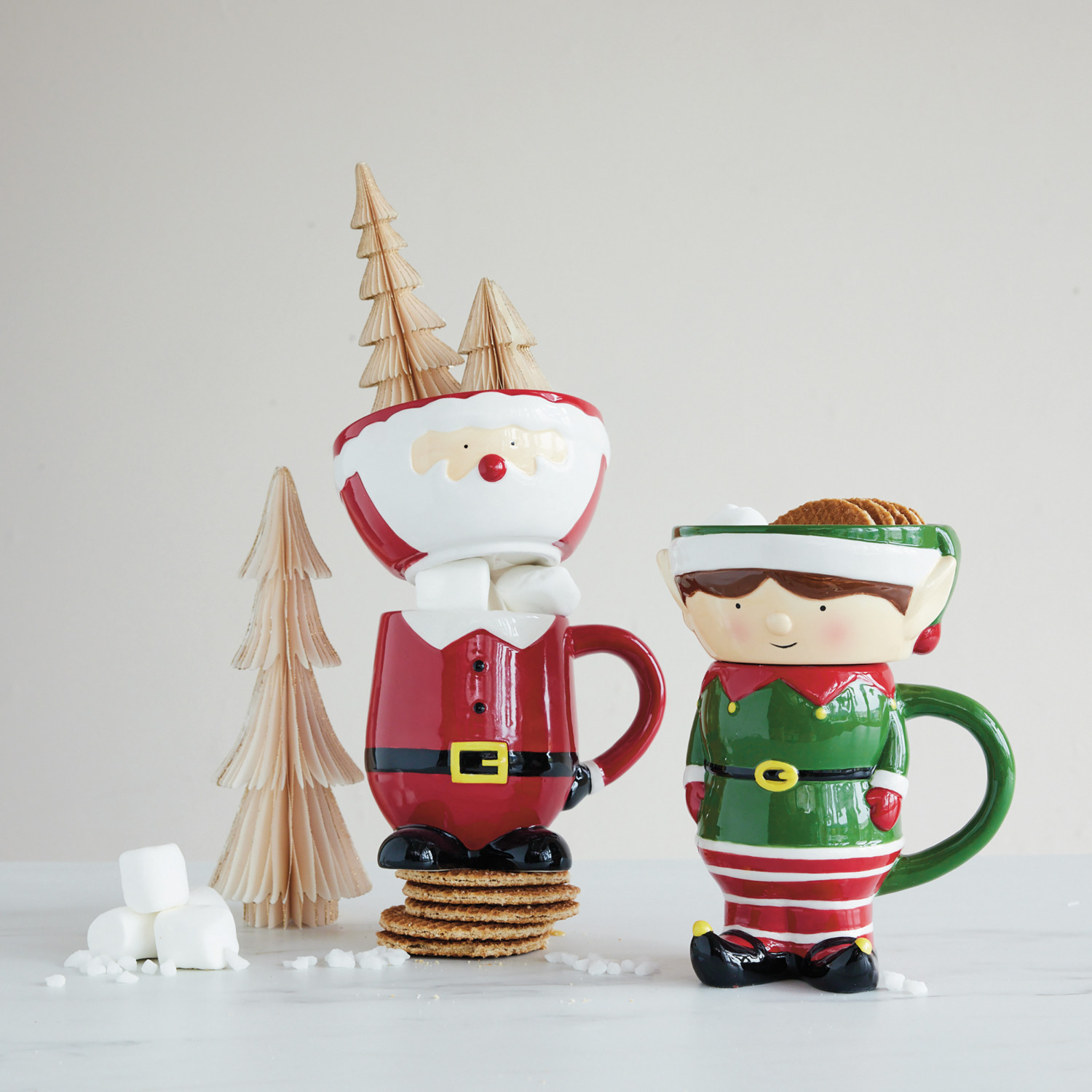 18 oz. Hand-Painted Ceramic Santa Shaped Mug & Stackable Bowl, Set of 2
