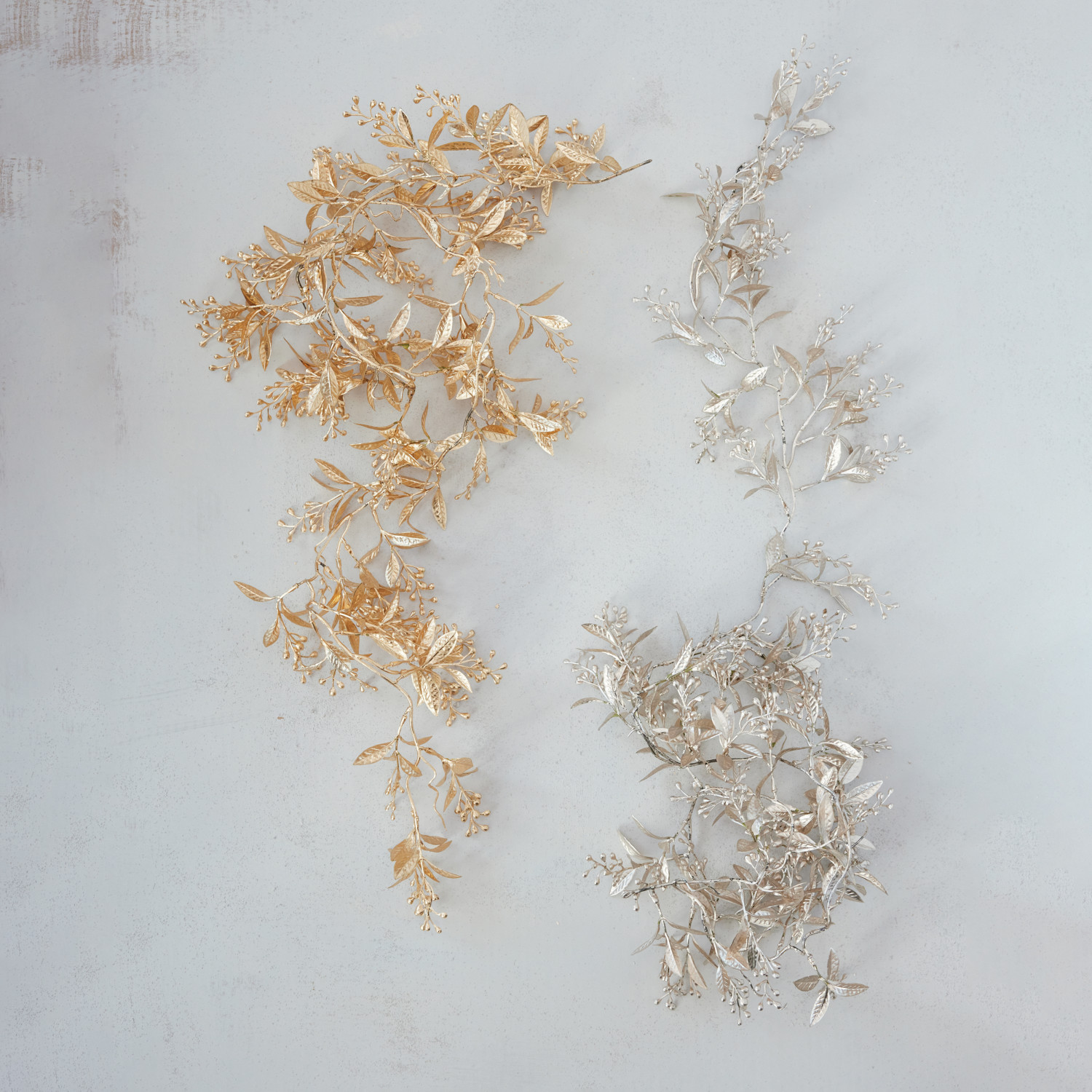 Faux Leaves & Berries Garland, Antique Gold Finish