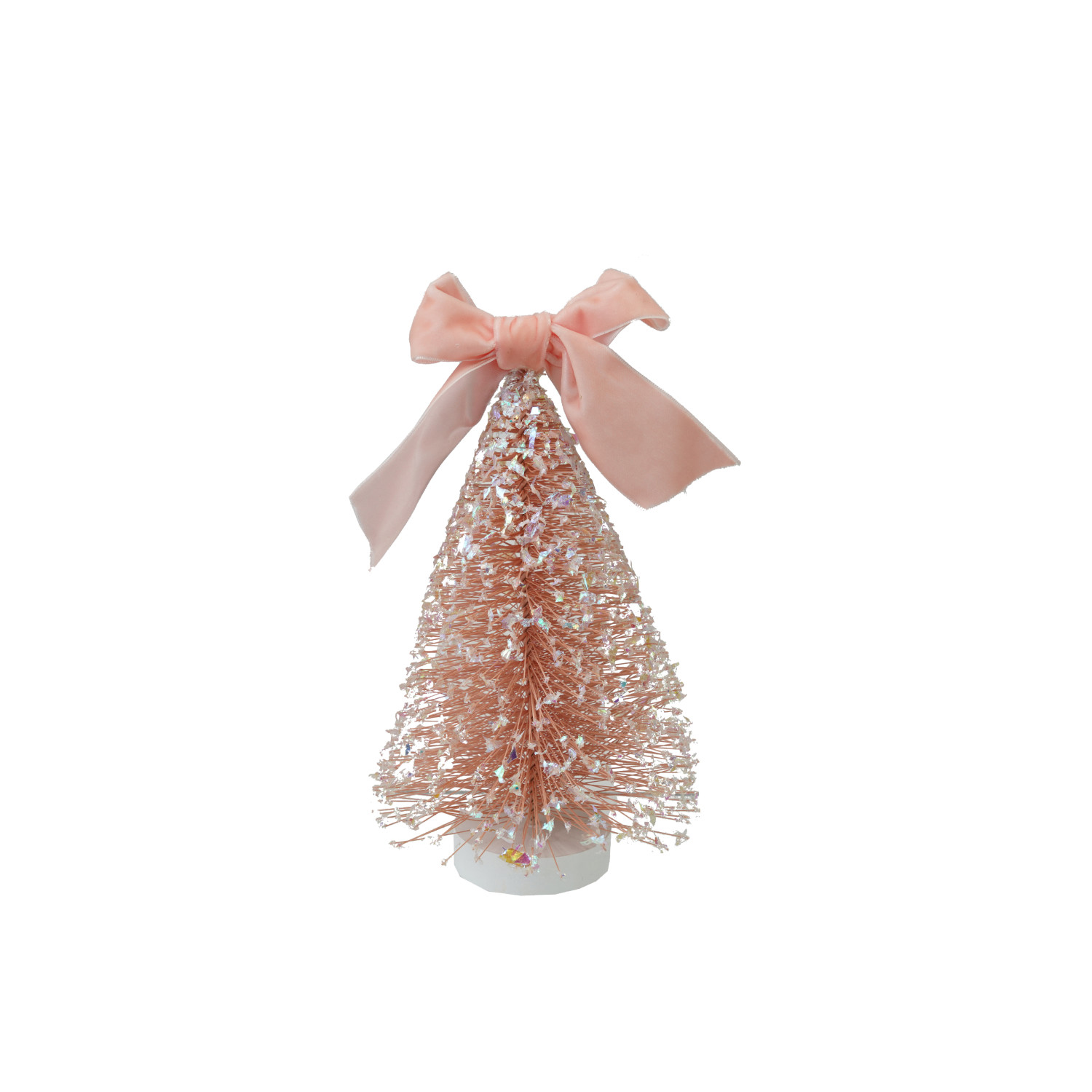 Plastic Bottle Brush Tree with Glitter, Velvet Bow & MDF Base, Snow Finish, Pink