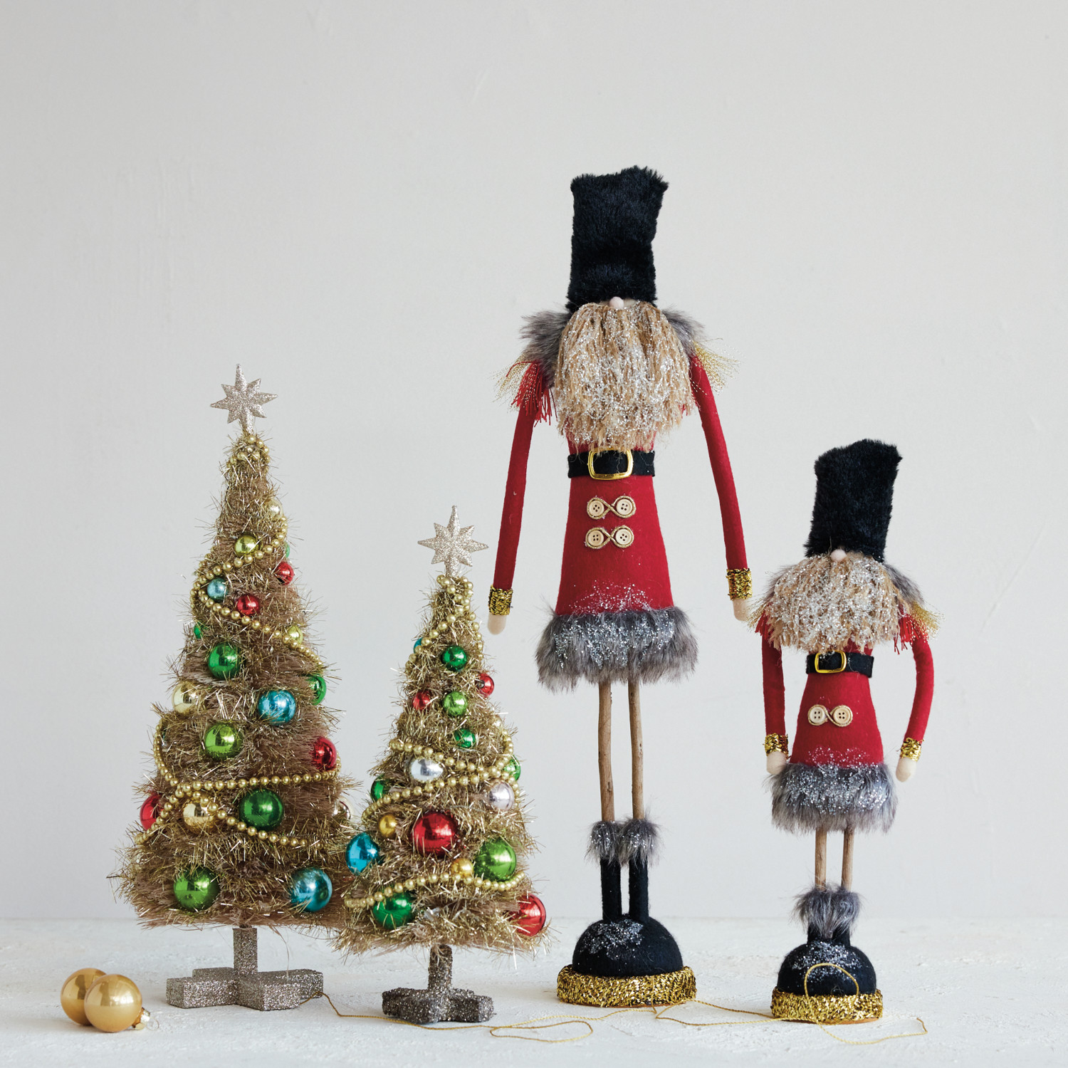 Catalog Name: 4-3/4"W x 13-3/4"H Fabric Soldier w/ Glitter, Faux Fur & Twig Legs, Multi Color