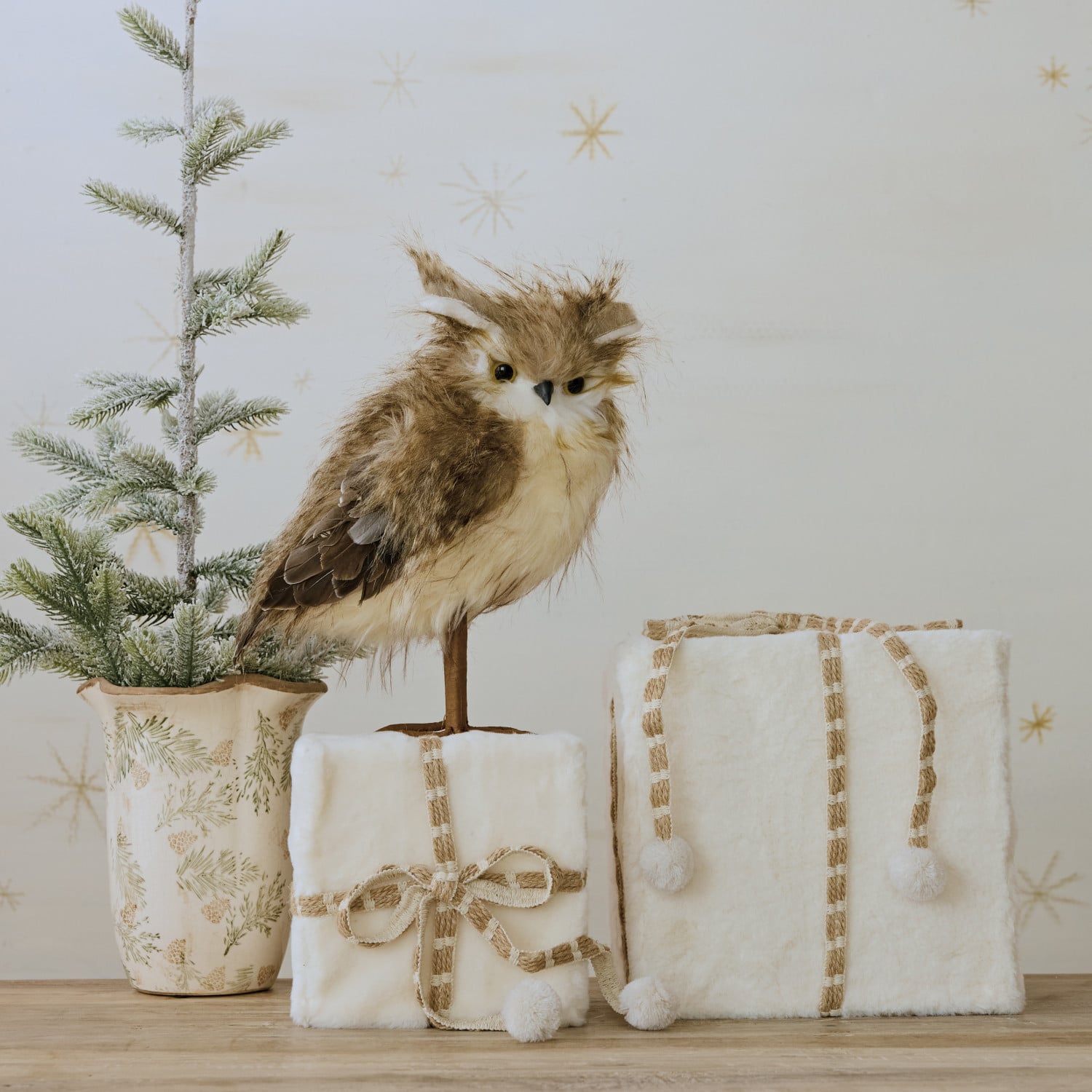 Catalog Name: 10"L x 6-3/4"W x 13"H Faux Fur Owl, Brown & White