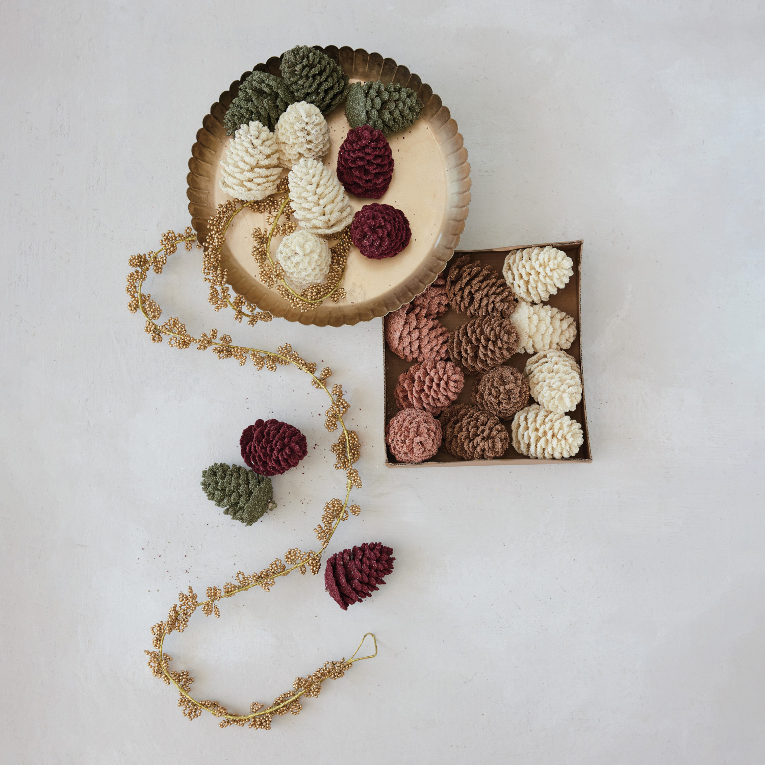 Faux Pinecones with Glitter, Pink, Brown & Cream Color, Boxed Set of 9