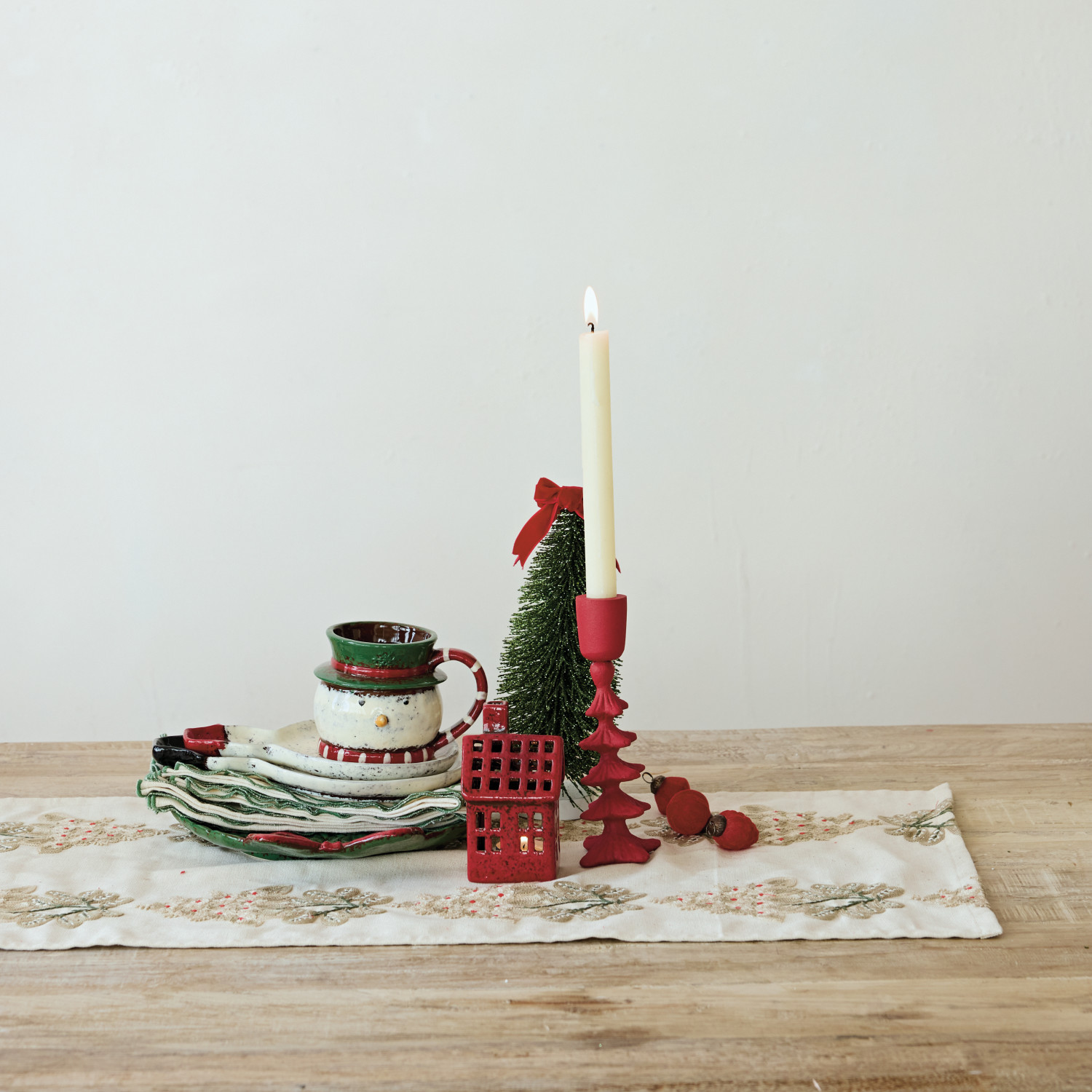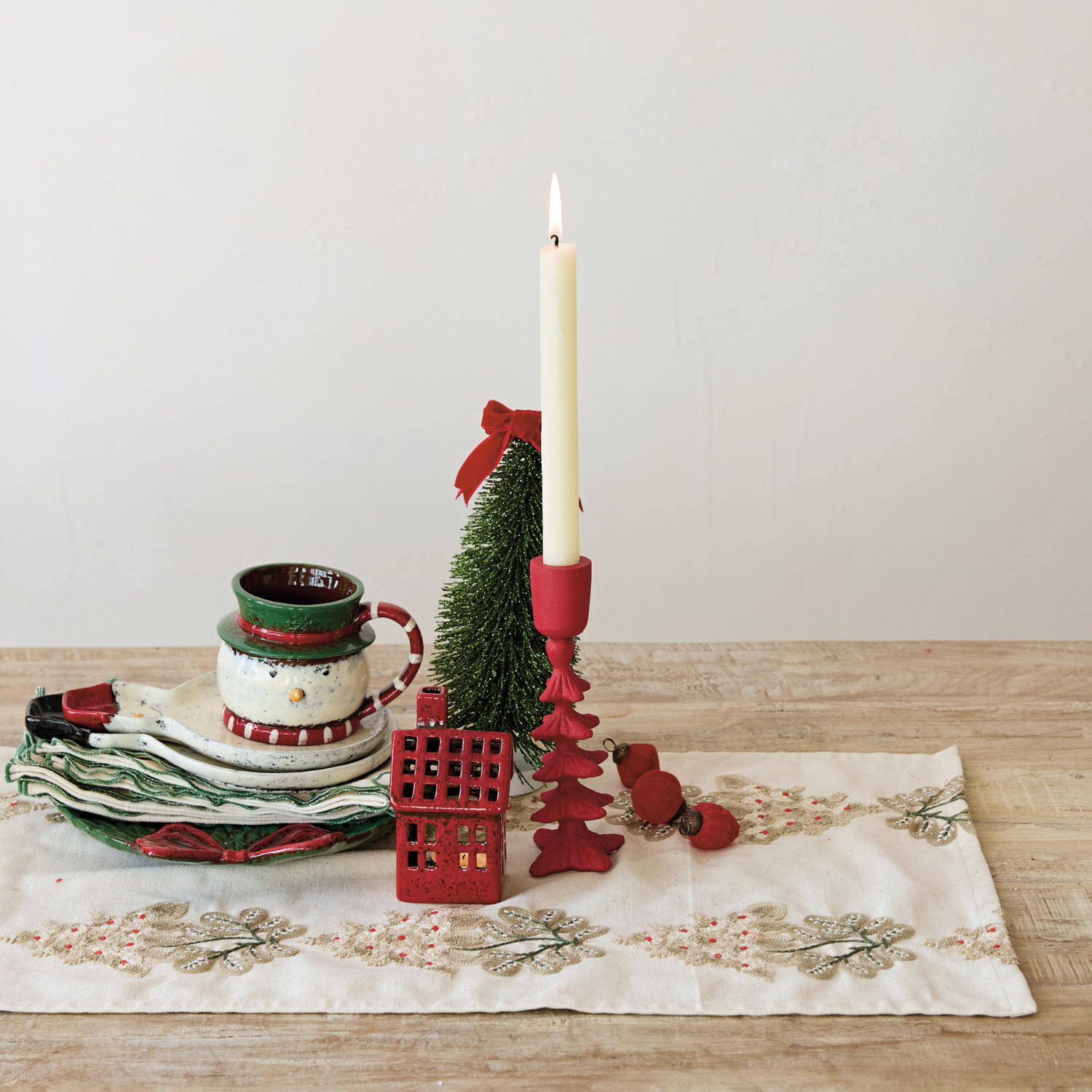36"L x 14"W Cotton Table Runner with Embroidered Mistletoe Pattern