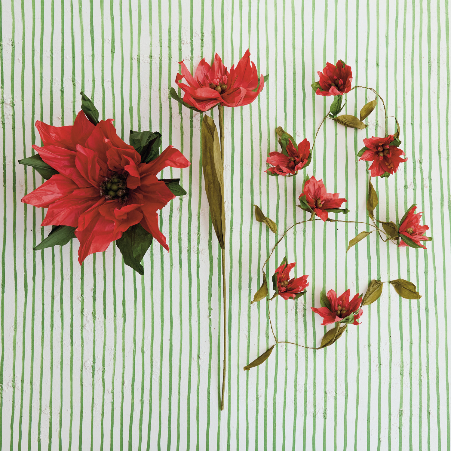 Handmade Paper Poinsettia Garland, Red & Green