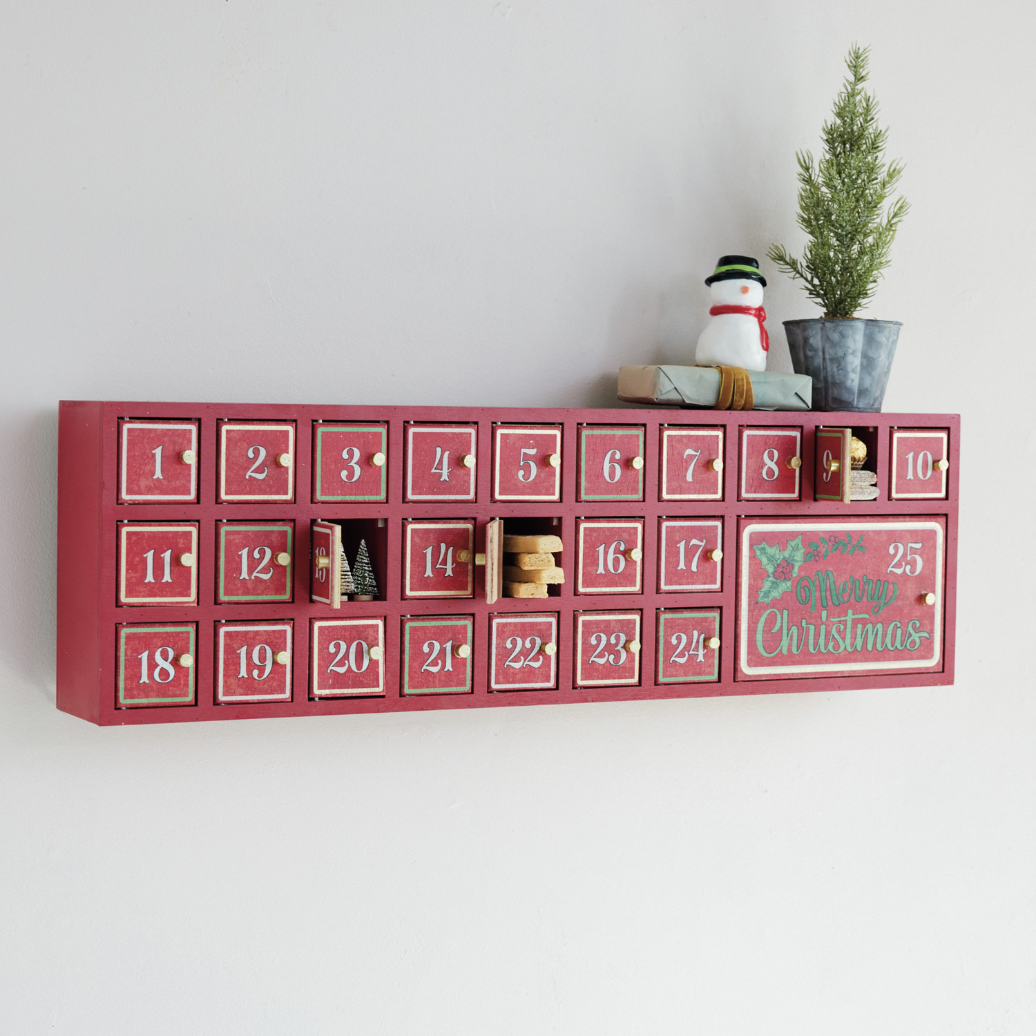MDF Advent Calendar with 25 Doors "Merry Christmas" (Hangs or Sits)