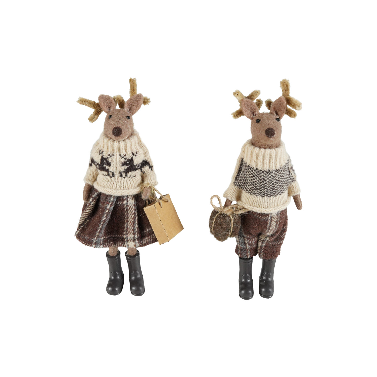Wool Felt Deer in Clothes & Resin Boots with Present, 2 Styles