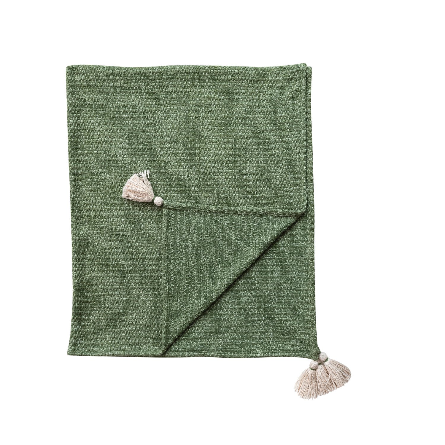 Catalog Name: 60"L x 50"W Stonewashed Woven Cotton Blend Slub Throw w/ Tassels, Green & Cream Color