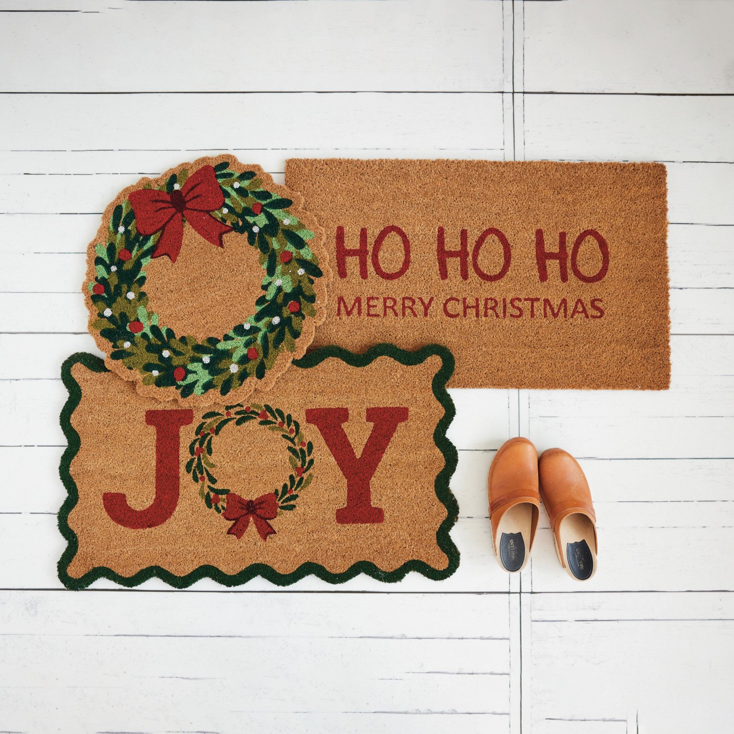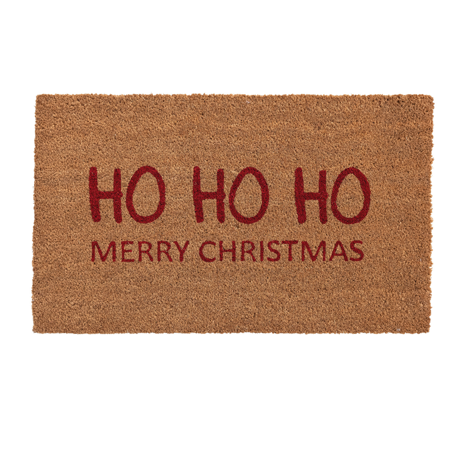 Catalog Name: 30"L x 18"W Natural Coir Doormat "HO HO HO Merry Christmas", Red