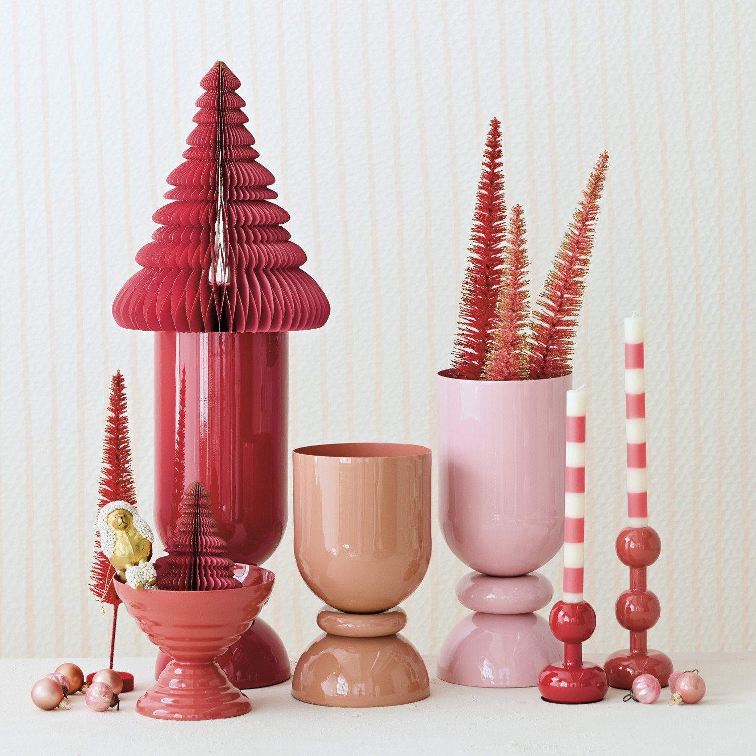 Catalog Name: 6" Round x 15-1/2"H Enameled Metal Footed Vase, Cranberry Color