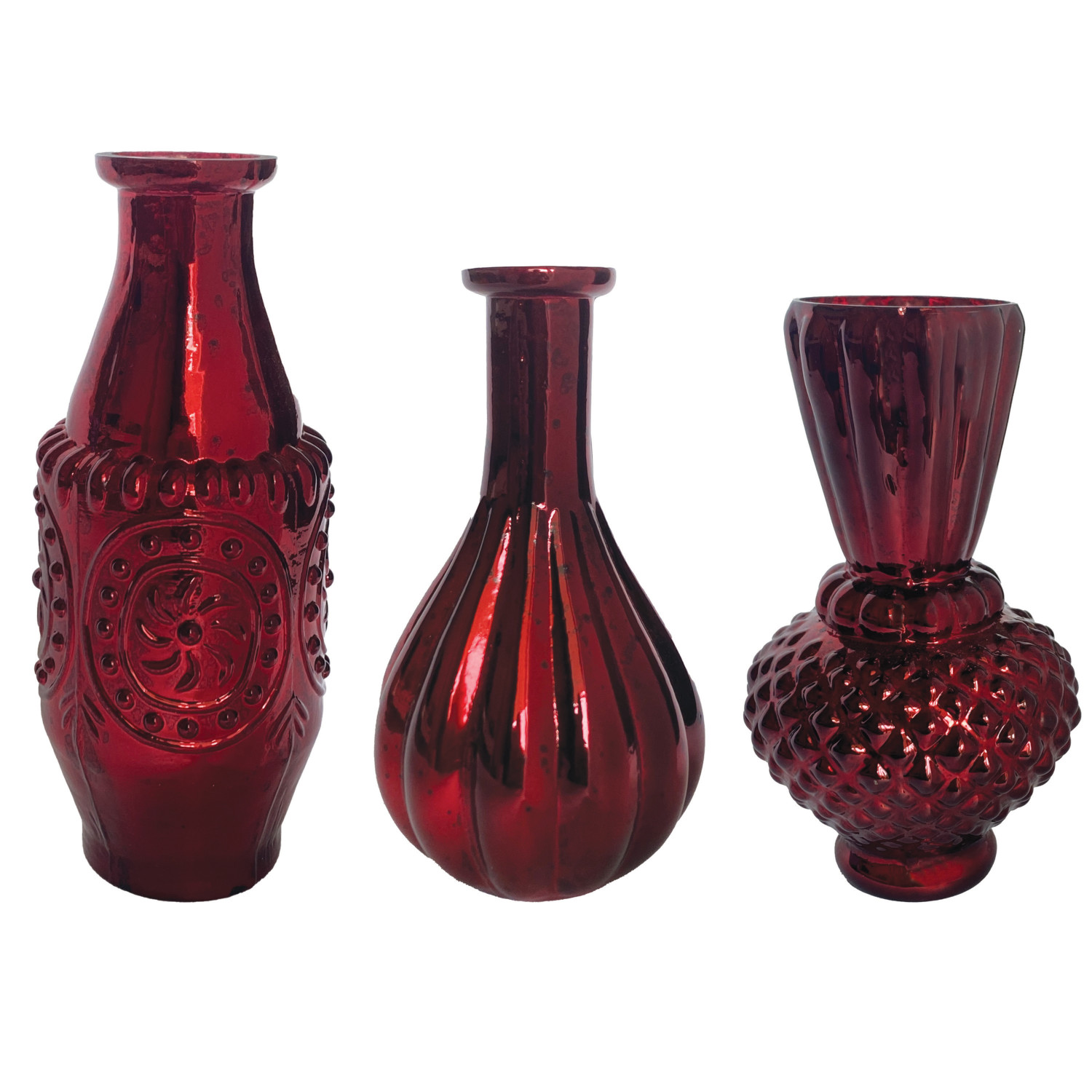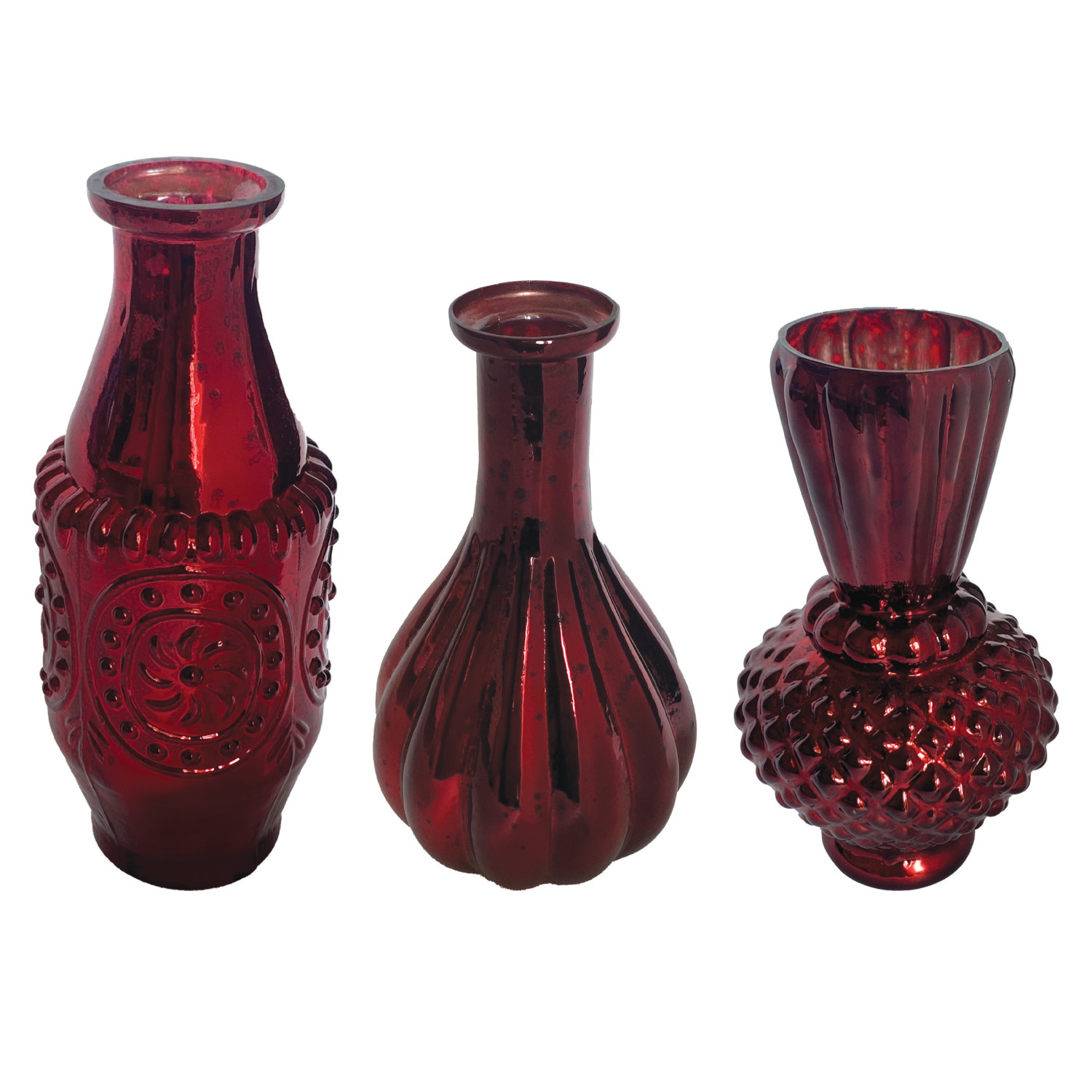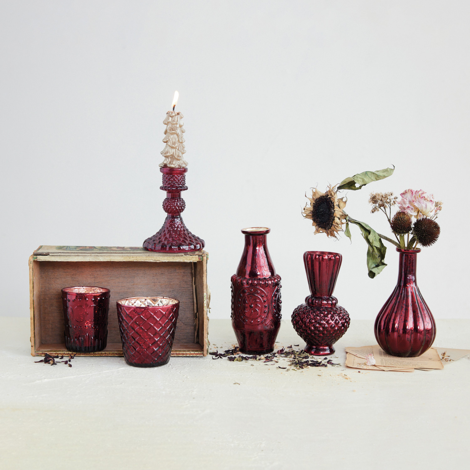 Embossed Mercury Glass Vase, Burgundy, 3 Styles