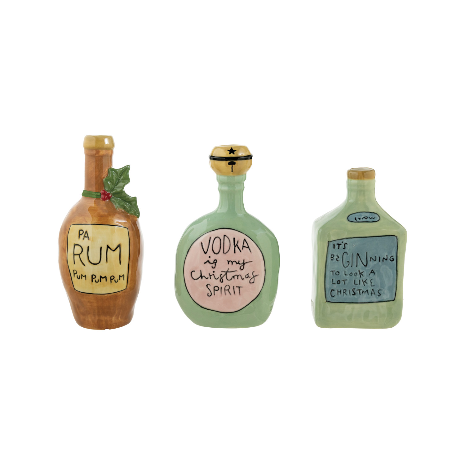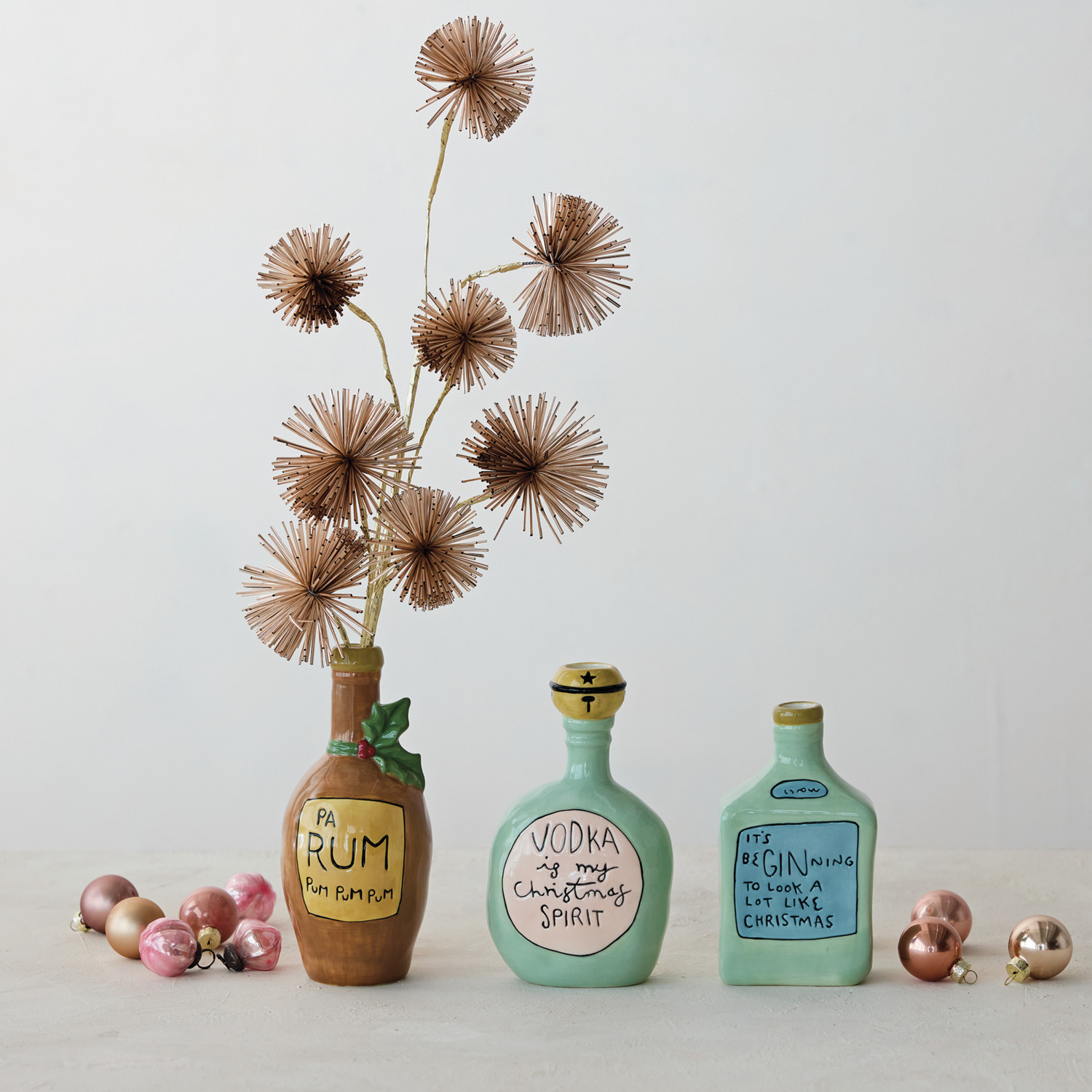 Hand-Painted Stoneware Bottle Shaped Vase with Holiday Cocktail Saying, 3 Styles
