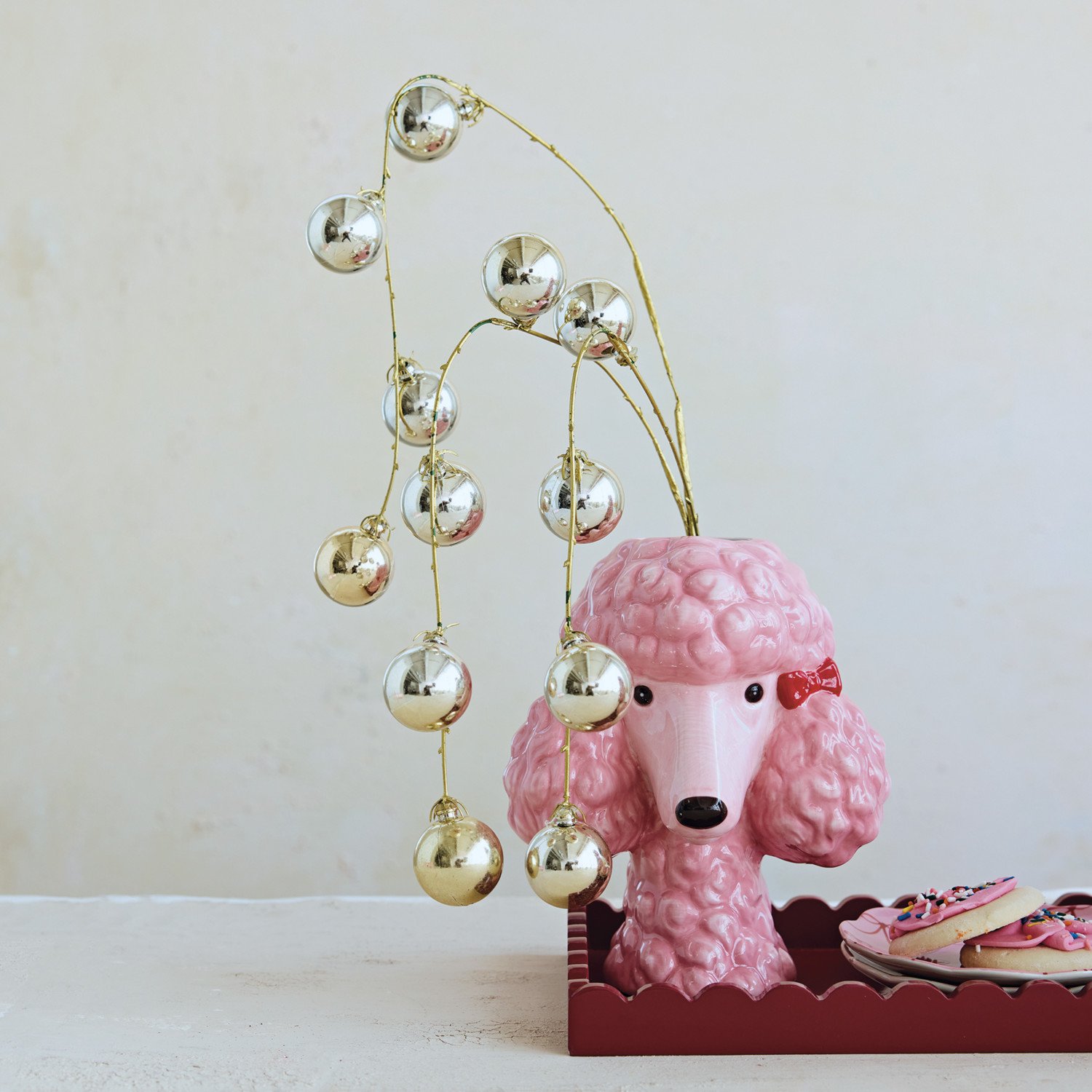 Ceramic Poodle Head Shaped Vase with Bows, Pink, Red & Black