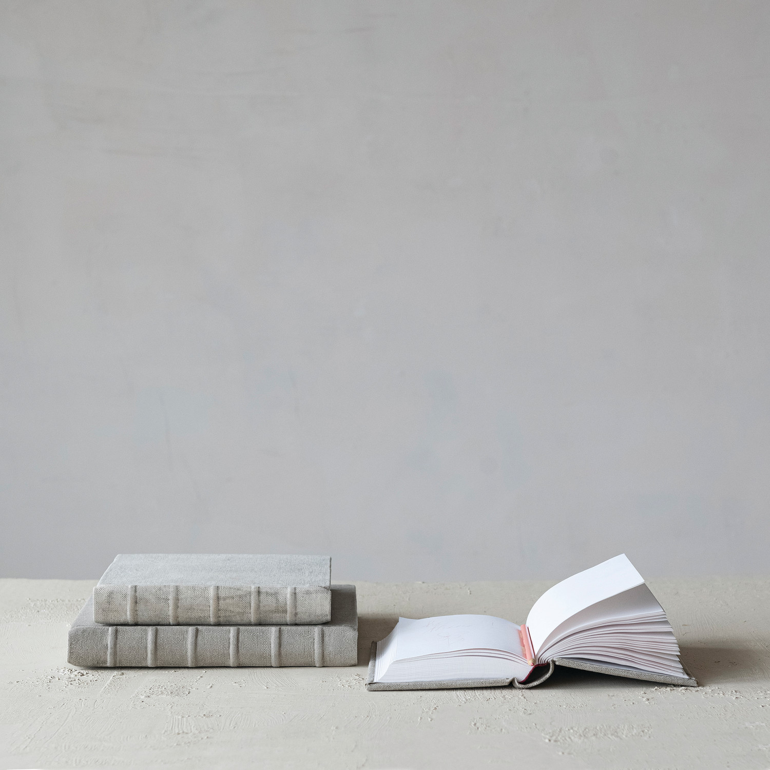 Catalog Name: 10-1/2"L x 8-1/4"W, 8-1/2"L x 6-3/4"W & 7-1/4"L x 5-1/2"W Stonewashed Canvas Bound Paper Notebooks w/ 198 & 188 Unruled Pages, Antique Grey, Set of 3